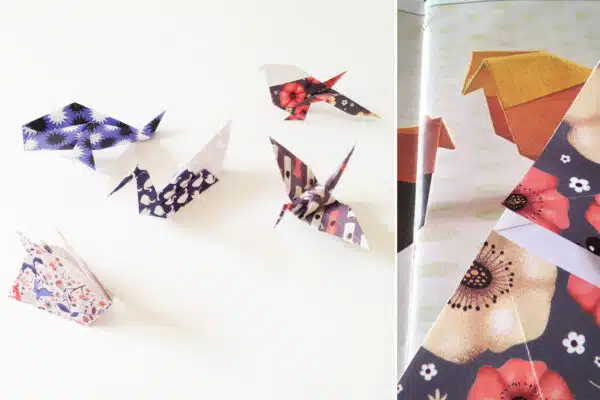 Alweer een tijdje terug kregen we de mooie vouwblaadjes van La Marelle binnen. Natuurlijk moesten we ze meteen uitproberen. Voor in de winkel vouwde ik een paar kraanvogels. Dit had ik nog redelijk in de vingers, omdat ik een tijdje geleden heel veel kraanvogels vouwde voor de gasten van ons huwelijk. Verder was het lang geleden. Als kind heb ik het wel veel gedaan. Het was bij ons in de buurt zelfs een tijdje ‘in’ om aan Origami te doen, zoals deze Japanse vouwkunst oorspronkelijk heet.