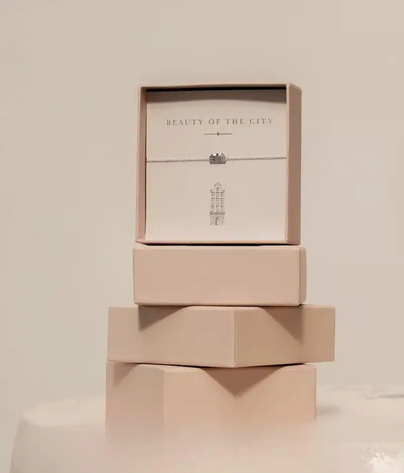 De huisjes aan dit armbandje zijn natuurlijk gebaseerd op de grachtenpanden van Amsterdam en Utrecht. Ga eens op zoek naar een rustig plekje in de stad en ‘enjoy beauty in the rush of life’.