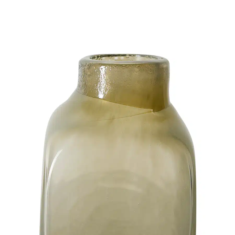 Deze kleine glazen vaas van de Atelier collectie verkent het begrip evenwicht door middel van een compacte, sculpturale vorm. De vaas is vervaardigd uit lichtgroen glas en vangt het licht op een zachte manier op, waardoor een subtiel gevoel van diepte en mysterie ontstaat. Door haar decoratieve karakter komt ze prachtig tot haar recht als op zichzelf staand object: onopvallend aanwezig, maar toch vol karakter.