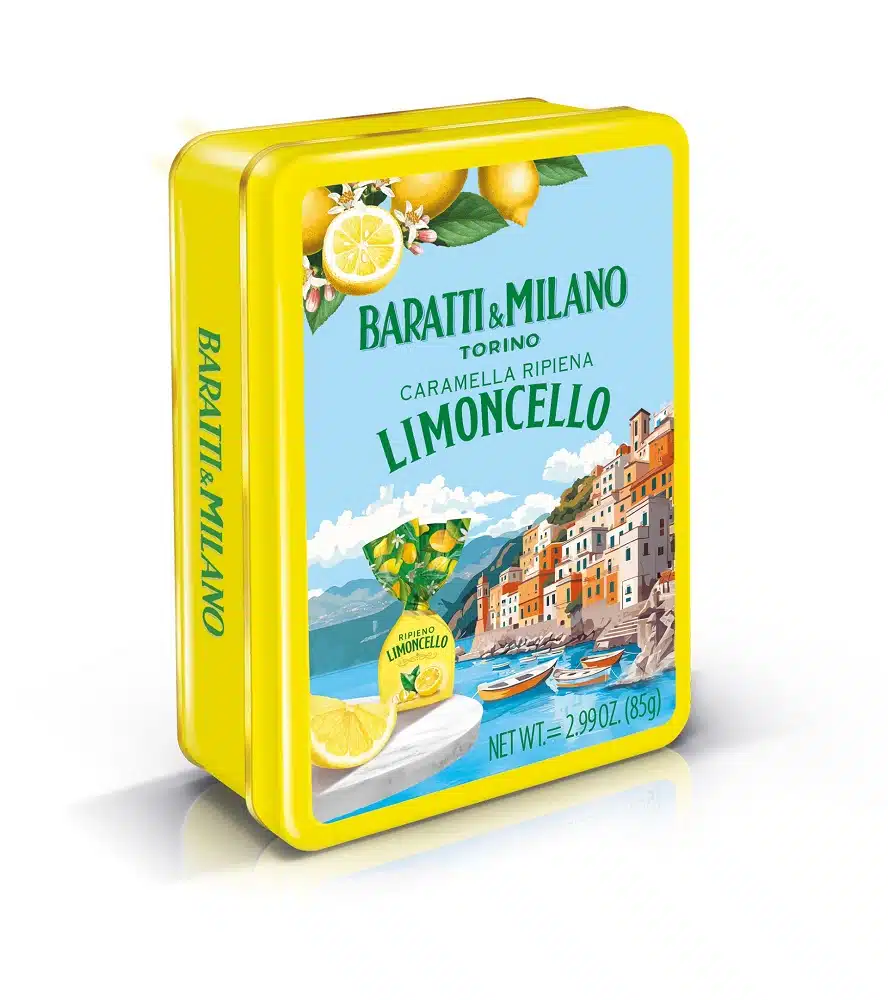 Ingredienten: Suiker, glucosestroop, invertsuikerstroop, likeur van citroenen uit Sorrento (water, alcohol, citroenschillen), suiker, cacaoboter, volle melkpoeder, alcohol, plantaardigvet, citroenzuur, natuurlijk aroma, essentiele citroenolie. Glutenvrij.