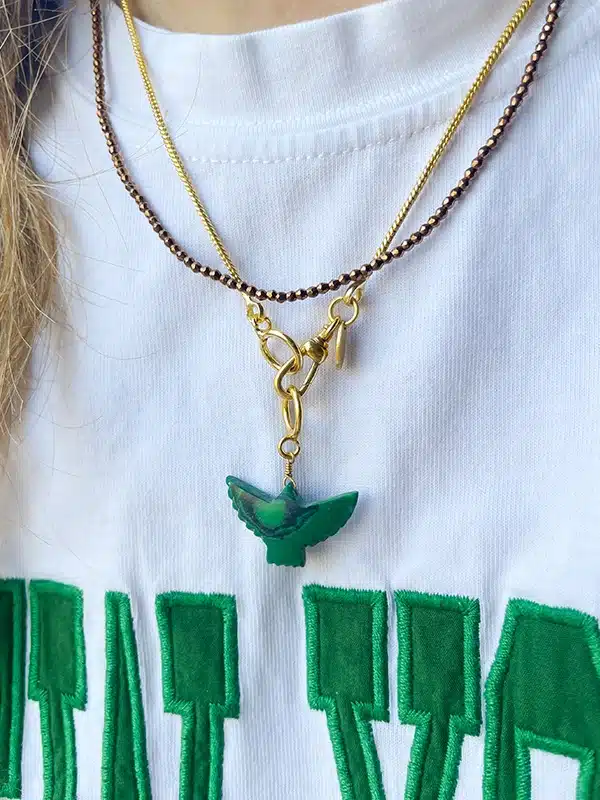 Verwen jezelf met deze prachtige vogel van Malachiet en combineer hem met je kettingen, of mix & match met onze andere bedels. De mogelijkheden zijn eindeloos!