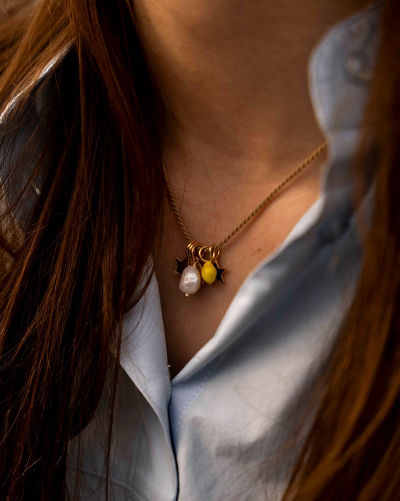 De Charm Lemon is een bedel in de vorm van een citroentje gemaakt van (gold plated) zilver met geel enamel om aan een rope of chain ketting te hangen.