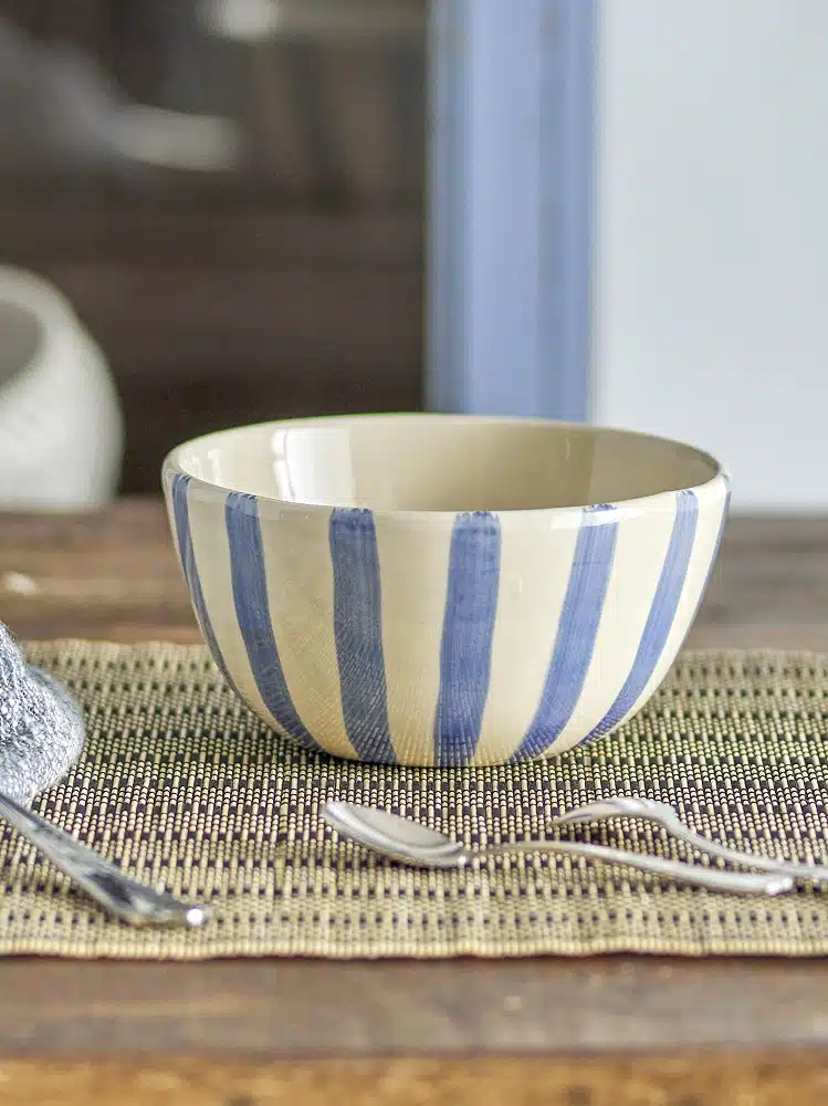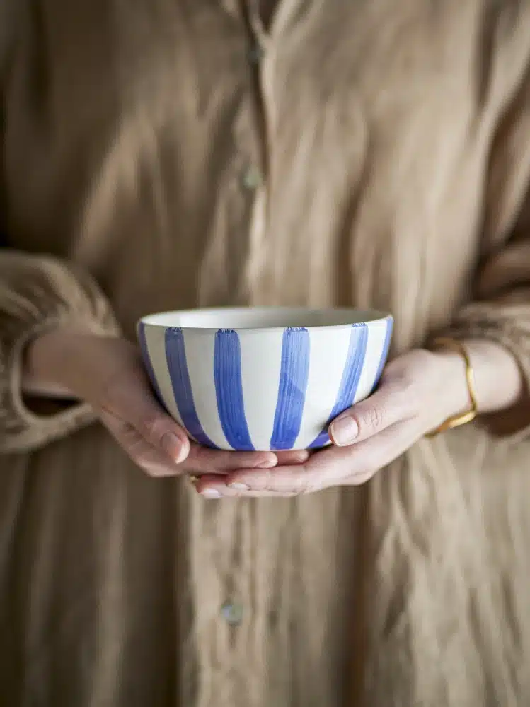De Begonia Bowl is gemaakt van steengoed en heeft een handgeschilderd gestreept motief. Of je hem nou gebruikt om iets in te serveren of als decoratief element in uw interieur, deze bowl zorgt gegarandeerd voor een gezellige sfeer. Verkrijgbaar in 3 kleuren en met bijpassende mokken.