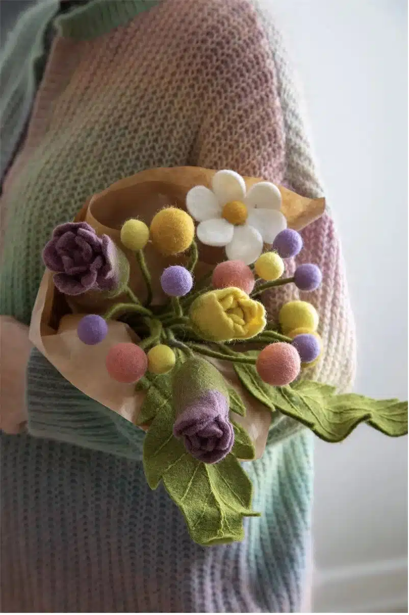 Een mooi groot vilten blad om te combineren met andere vilten bloemen of droogbloemen.