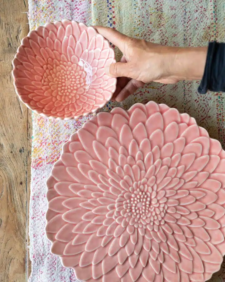 De Bloom-schalen worden nog steeds gegoten in traditionele mallen en worden met de hand geglazuurd. In nauwe samenwerking met Bordallo breidde Van Verre het klassieke Bordallo kleurengamma uit. Wees gedurfd en combineer contrasterende kleuren, vormen en materialen voor een speels effect.