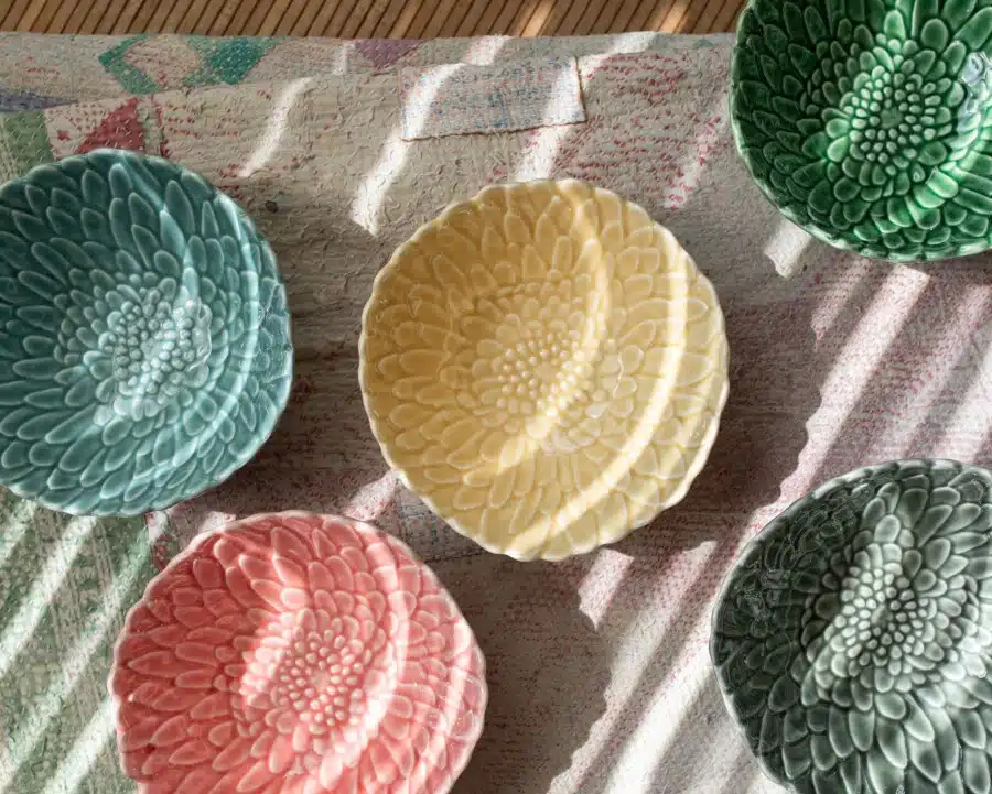 De Bloom-schalen worden nog steeds gegoten in traditionele mallen en worden met de hand geglazuurd. In nauwe samenwerking met Bordallo breidde Van Verre het klassieke Bordallo kleurengamma uit. Wees gedurfd en combineer contrasterende kleuren, vormen en materialen voor een speels effect.