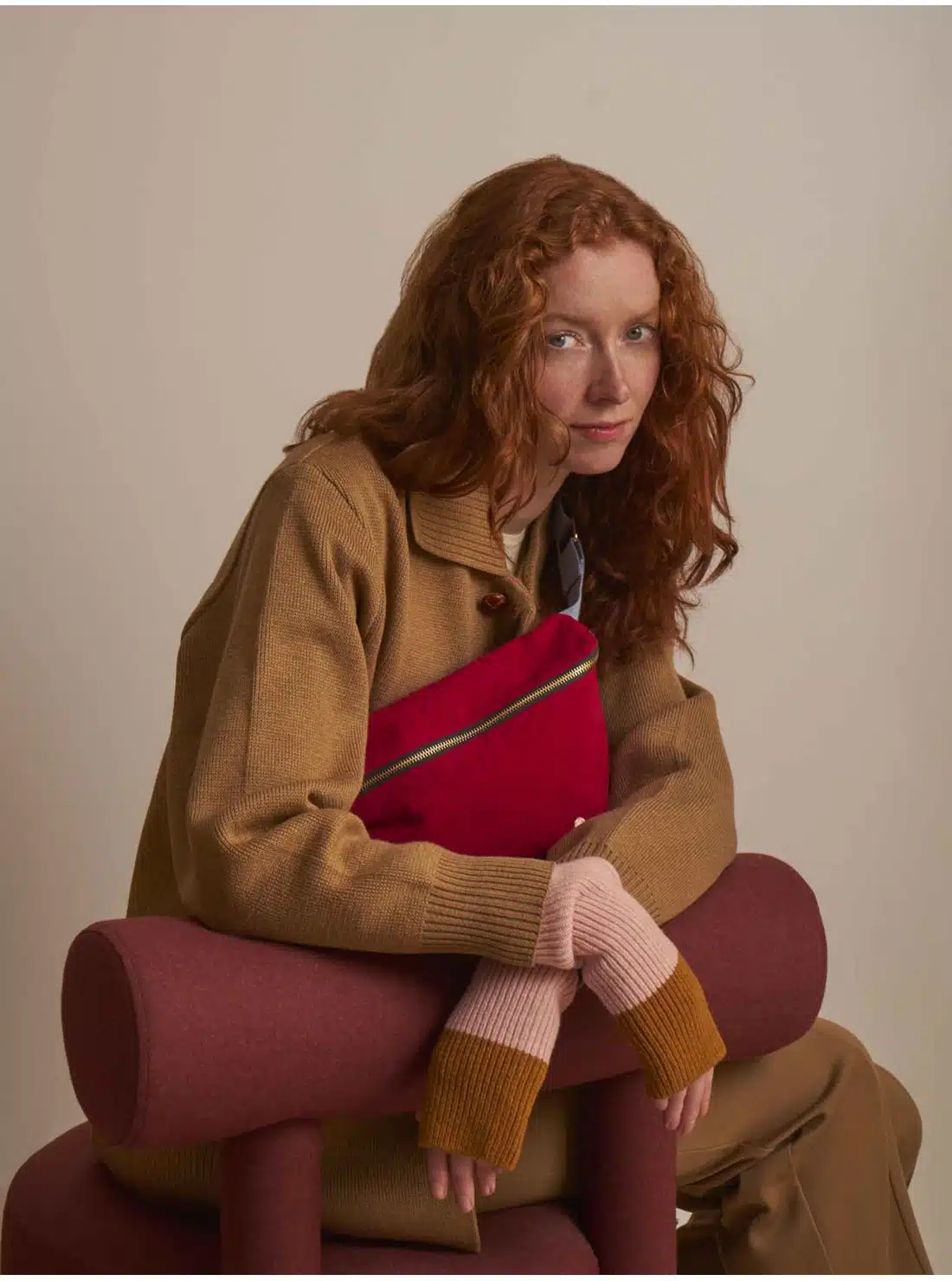 Een mooie en praktische bum bag van het Franse merk la Cerise sur le gateau in rood met een ijsblauwe band.