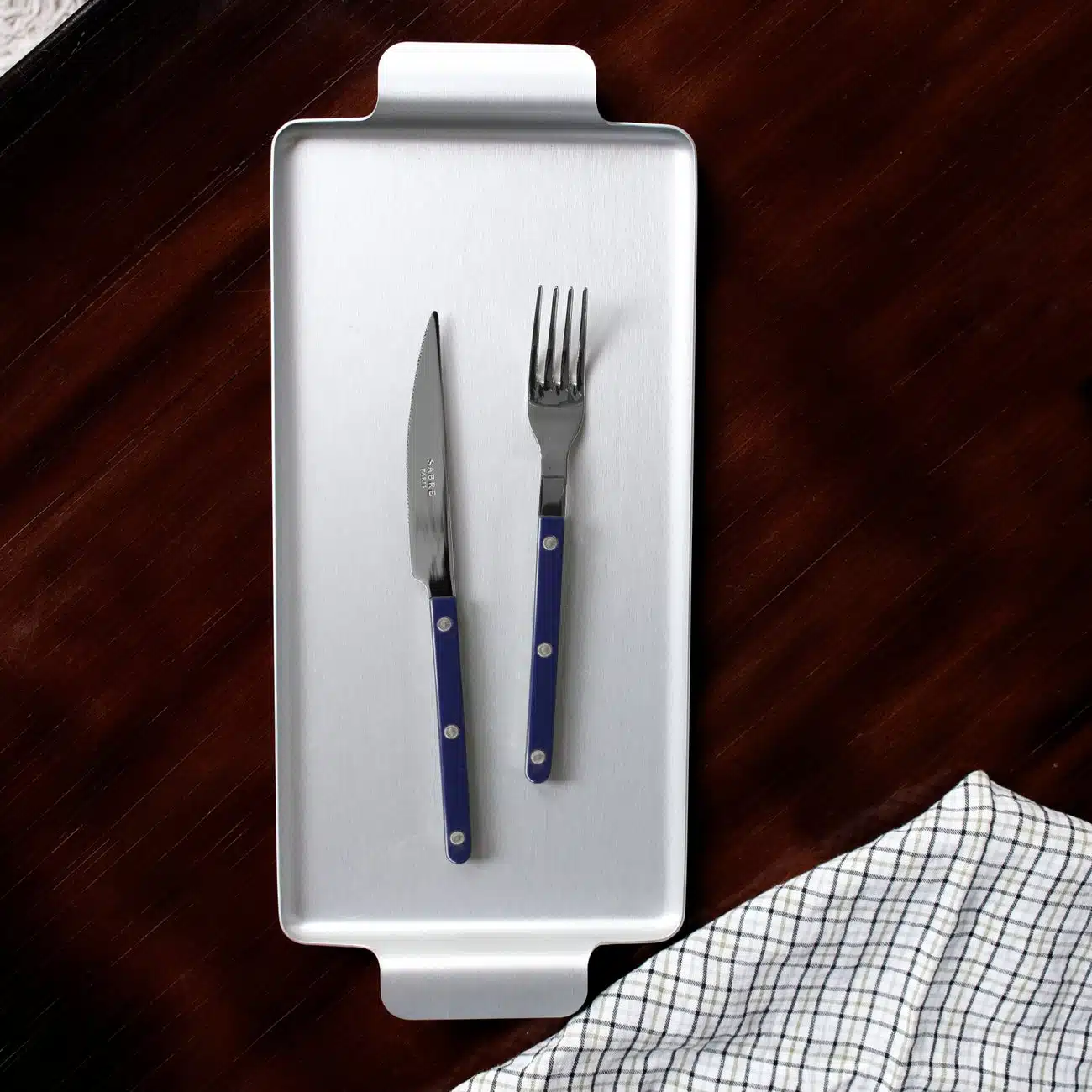 Bij het ontwerpen van dit bestek wilden ze trouw blijven aan de sfeer en tegelijkertijd een modern tintje toevoegen: de styling is eenvoudig, de klinknagels zijn zichtbaar, terwijl de kleuren en materialen mooi uitkomen. Sabre Paris weet zeker dat je zult genieten van deze collectie, die is ontworpen om tegelijkertijd traditioneel en eigentijds te zijn.
