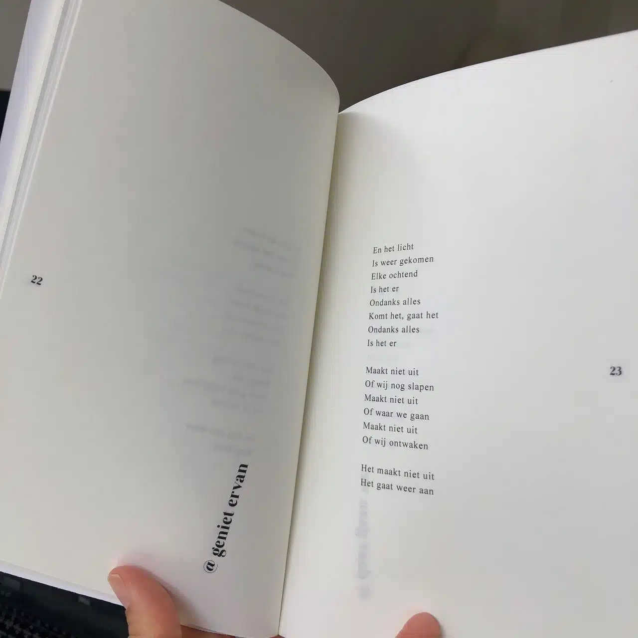 Dathetrijmt (Nadia Mennes) schrijft fris, positief, gevoelig, diepgaand. Met hier en daar een knipoog. Woorden die ruimte scheppen en je eraan herinneren je te verbinden met jezelf, de natuur, je dierbaren en de grootsheid van het bestaan.
