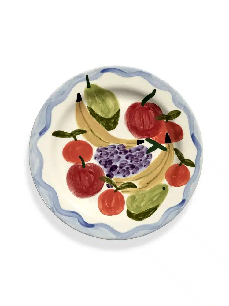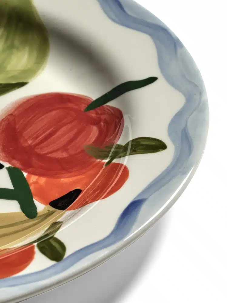 De Belgisch-Peruaanse kunstenaar Shirley Villavicencio Pizango, beter bekend als Shurleey, is een rijzende ster in de kunstwereld, met haar levendige portretten die tot in New York worden getoond. Serax brengt haar schilderachtige universum tot leven in keramiek. Eerst was er een serie vazen; nu volgt een collectie met prachtige borden, elk met een eigen tafereel. De illustraties van bloemen, planten en fruit stralen de warmte en wildheid van de tropen uit. Met deze hand beschilderde collectie wordt Shurleey’s kunst toegankelijker dan ooit.
