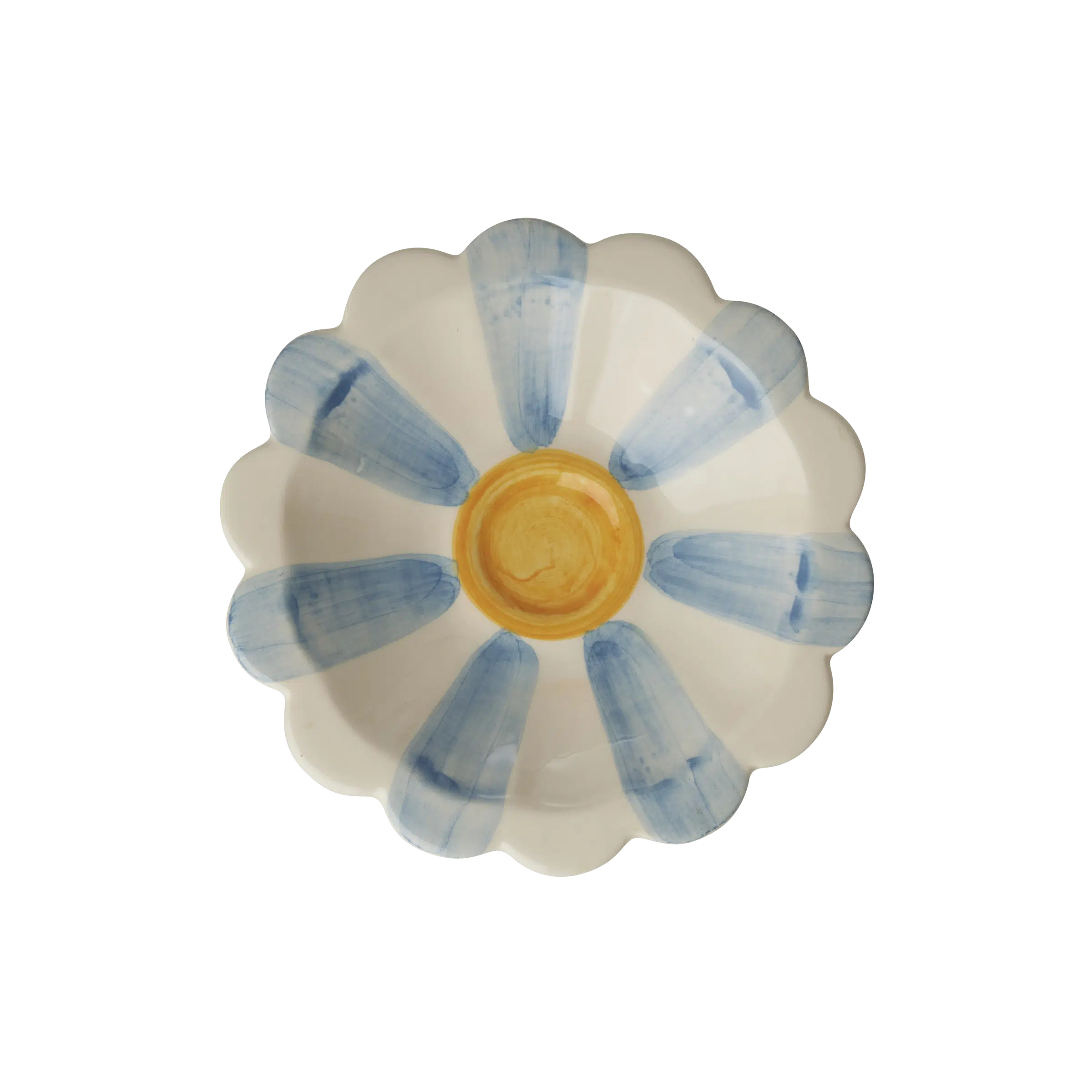 Word helemaal verliefd op dit prachtige kommetje met een op bloemen geïnspireerd ontwerp en met mooie blauwe strepen. Gebruik het schaaltje als sideplate, als dipschaaltje met olijfolie met kruiden of heerlijk zelfgemaakte humus of zet het schaaltje op jouw slaapkamer voor jouw allermooiste sieraden. Oneindig veel mogelijkheden!