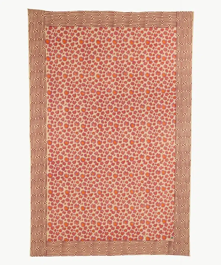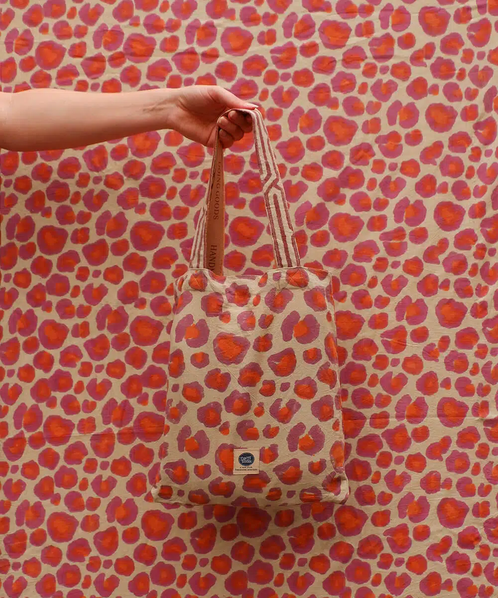De stof is met de hand bedrukt met bewerkte houten blokken. Blokdruk of -print is een van de vroegste, eenvoudigste en langzaamste van alle methoden van textieldruk.