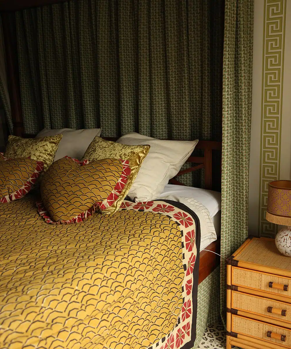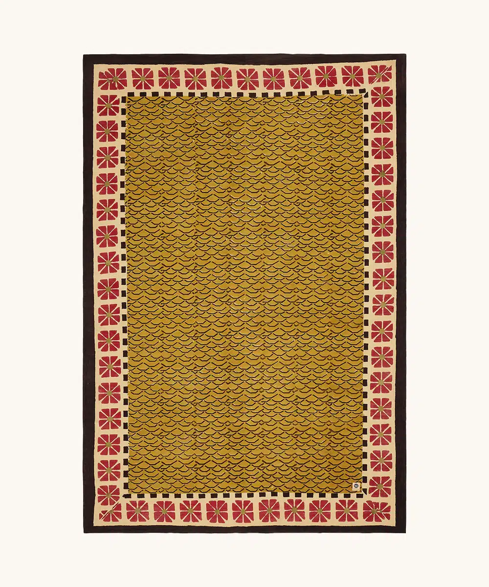 De stof is met de hand bedrukt met bewerkte houten blokken. Blokdruk of -print is een van de vroegste, eenvoudigste en langzaamste van alle methoden van textieldruk.