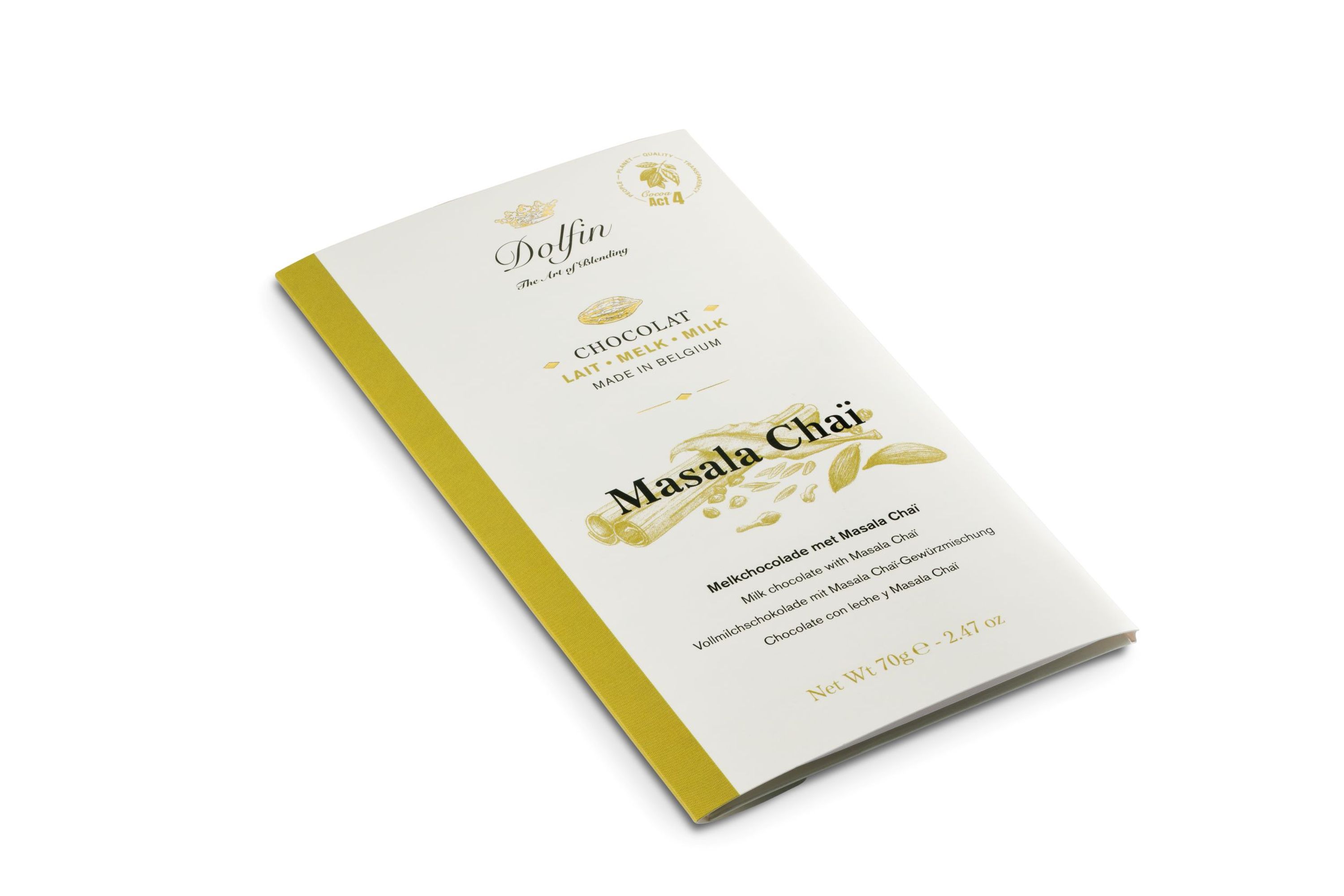 Ingrediënten : Suiker, cacaomassa, cacaoboter, volle melkpoeder, masala 1%, emulgator: sojalecithine, natuurlijk vanillearoma. Ten minste 37% cacaobestanddelen. Kan sporen van noten, gluten, eieren en sesam bevatten.