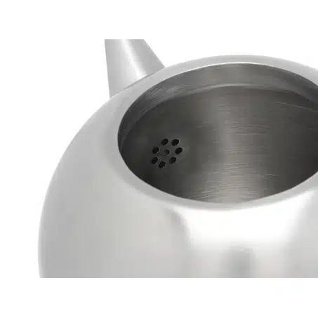 Deze dubbelwandige theepot van Bredemeijer houdt de thee lekker lang warm. De hele theepot is gemaakt van mat RVS en mag in de vaatwasser.