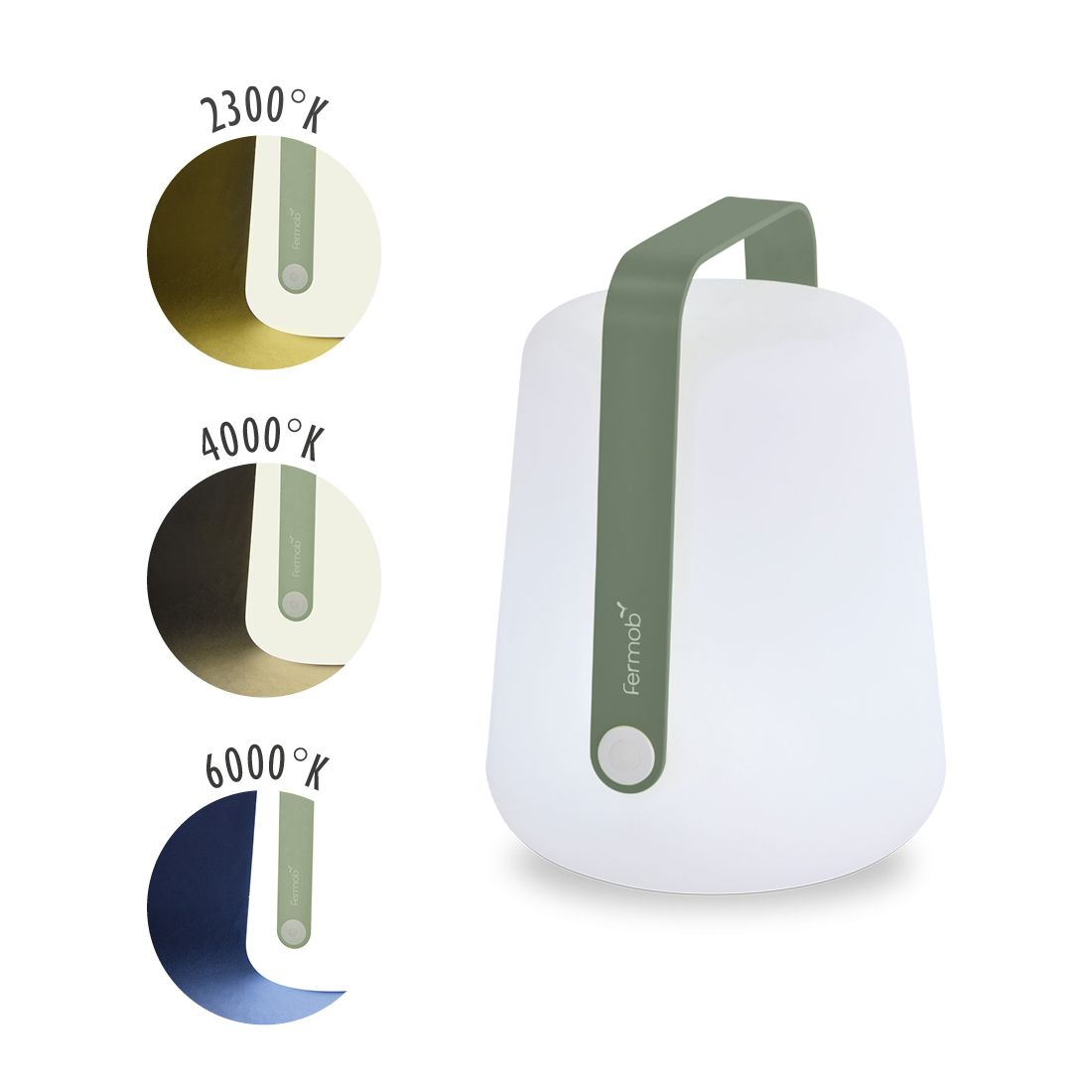Balad, de buitenlamp die kan worden opgeladen met een simpele USB-kabel, heeft een batterijduur van ongeveer 12 uur, drie lichttemperatuurinstellingen – kaarstype warm wit (2300°K), neutraal wit (4000°K) en koel wit (6000°K) – en twee helderheidsinstellingen (100% en 50%).