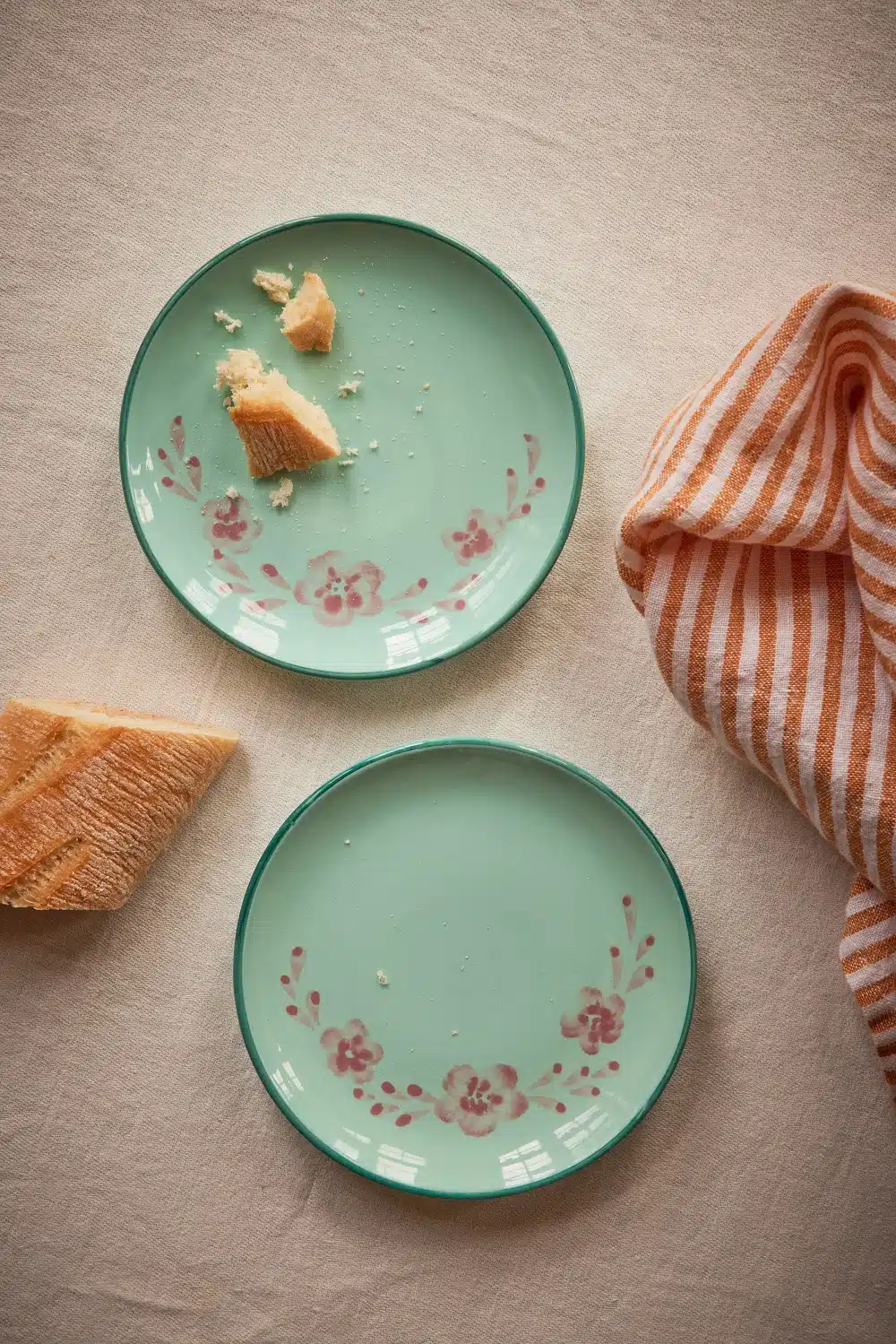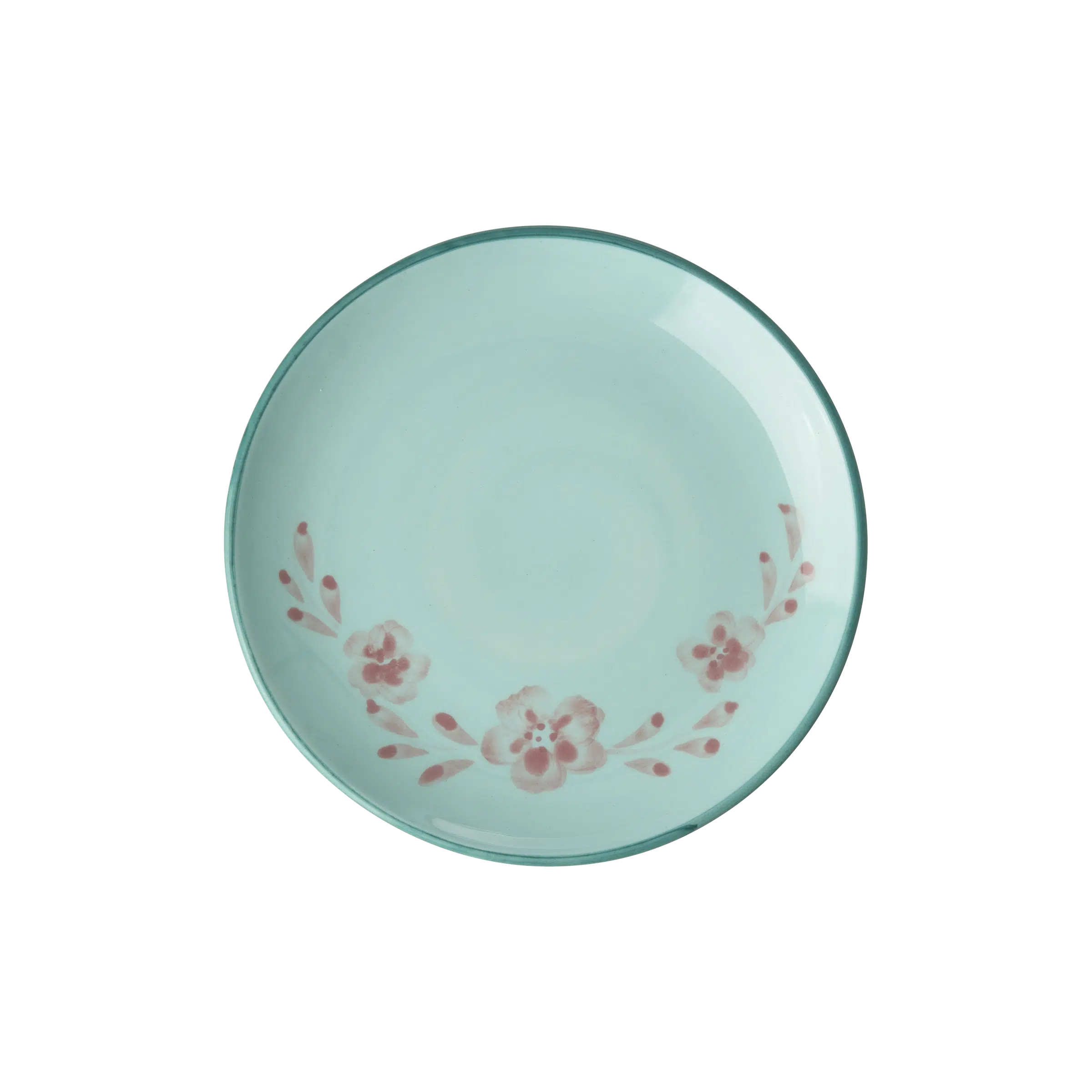 Zorg voor een prachtig gedekte taarttafel met dit mooie keramieken gebaksbordje. Het bordje is handgeschilderd en heeft een motief van bloemen op een muntkleurige achtergrond. Elk bordje is met de hand beschilderd door een groep fantastische Portugese vrouwen, waardoor elk bord echt uniek is. Wij vinden het zo charmant!