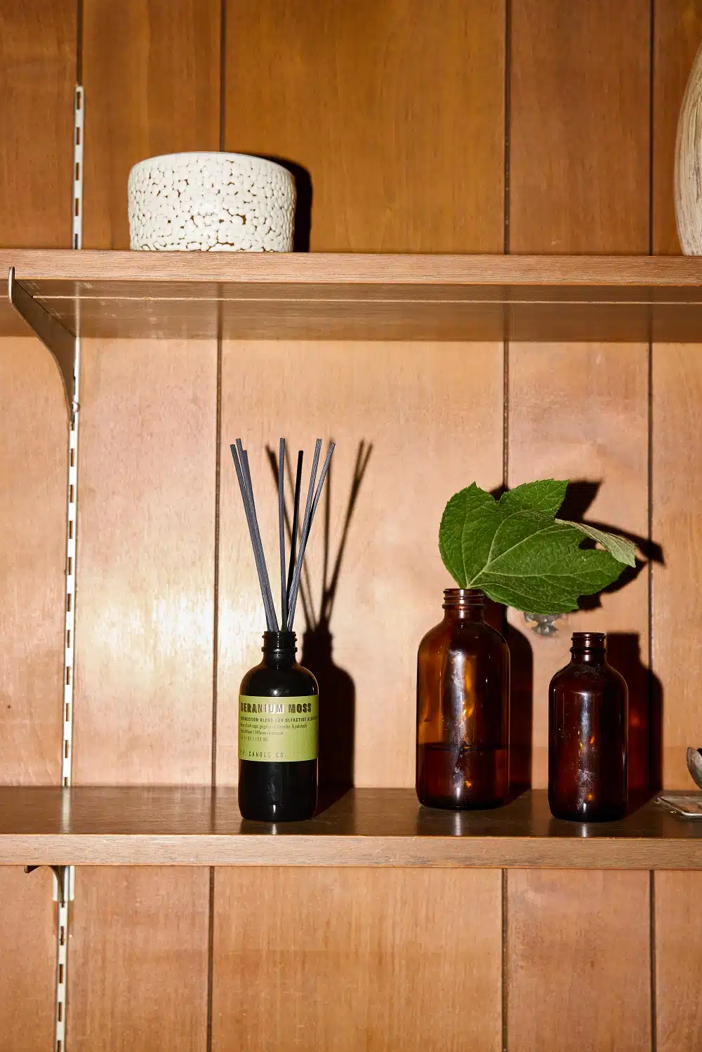 Deze geurlijn gebruikt duurzame en/ of upcycled ingrediënten, rookkleurige glazen flessen en zwarte rotan rietstokjes.