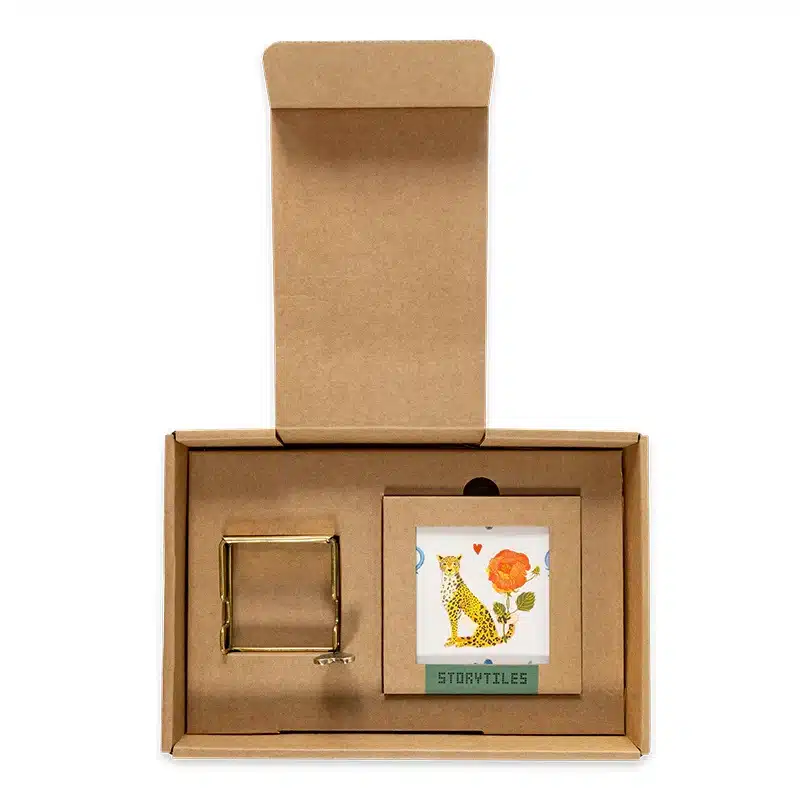 Dit is een GIFT SET bestaande uit een Small tegel (10×10 cm) én een Golden holdie met ‘n rood hartje – samen in een omdoosje.
