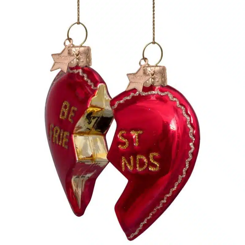 Dit is vriendschap voor altijd! Voor ieder 1 deel van het hart en als jullie samen kerst vieren dan kunnen de 2 helften naast elkaar in de kerstboom. Merry Christmas!