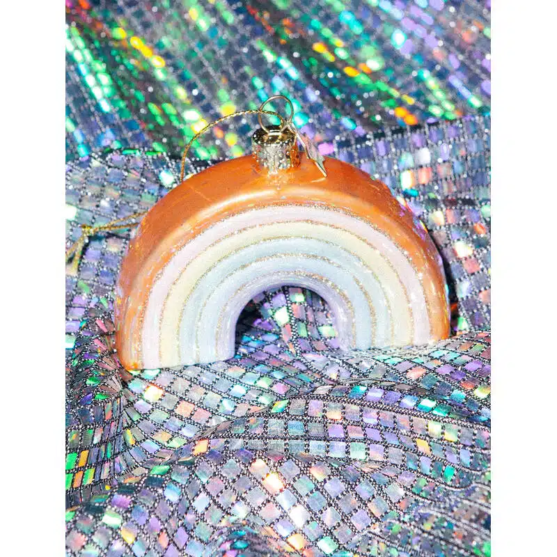 Een leuke kersthanger in de vorm van een regenboog in pastel kleuren. Geef jouw kerstboom wat kleur!