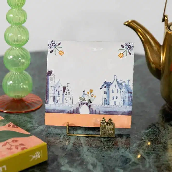 Laat je tegeltje shinen in de ‘Golden Holdie’ van Storytiles, een gouden houdertje waarin je tegel extra mooi tot z’n recht komt. De Golden Holdies zijn handgemaakt door Doing Goods, met aandacht en liefde voor de lokale vakmensen & hun traditionele ambacht.