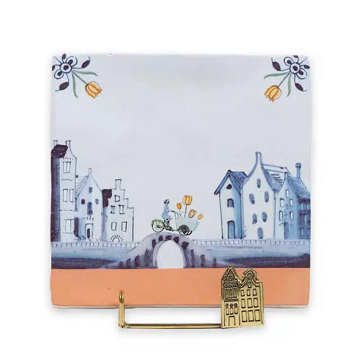 De gouden holdies zijn handgemaakt van messing. De figuurtjes op deze tegelhouders worden met de hand gestanst. De holdies zijn geschikt voor de small (10×10) en de Medium (13×13) tegels.
