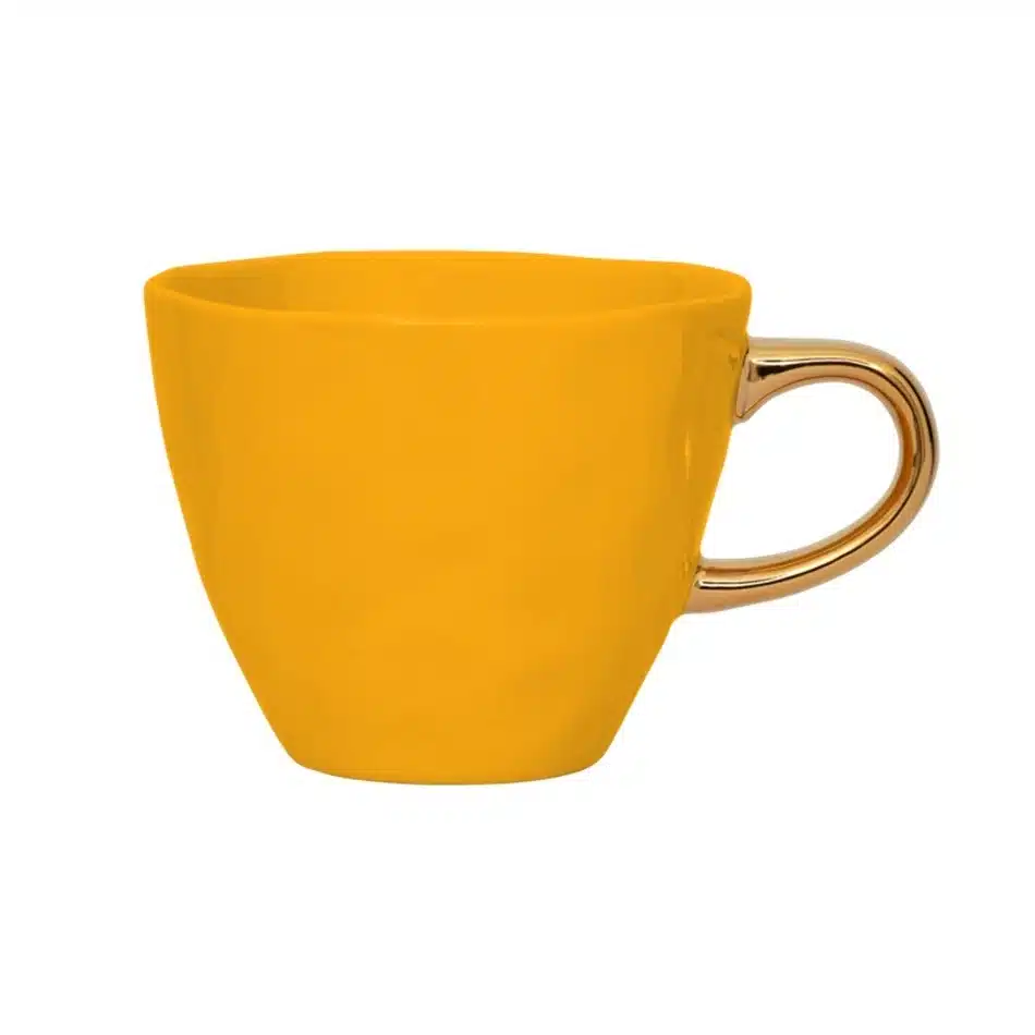 Ochtendmens of het snooze-type, snel ontbijt in de keuken of een luxe ontbijt in de eetkamer, wat je maar wilt, de Good Morning Cup van Urban Nature Culture zorgt voor een goed begin van je dag. Het prachtige gouden oor maakt vanaf het begin deel uit van de collecties van UNC en zorgt ervoor dat deze serviesserie echt als thuis voelt. Deze Good Morning Cup heeft een mooie, frisse gele kleur, met een handgeschilderd, gouden handvat. Een ontwerp dat inspireert, welke avonturen je die dag ook te wachten staan – begin het met een fijne kop koffie!