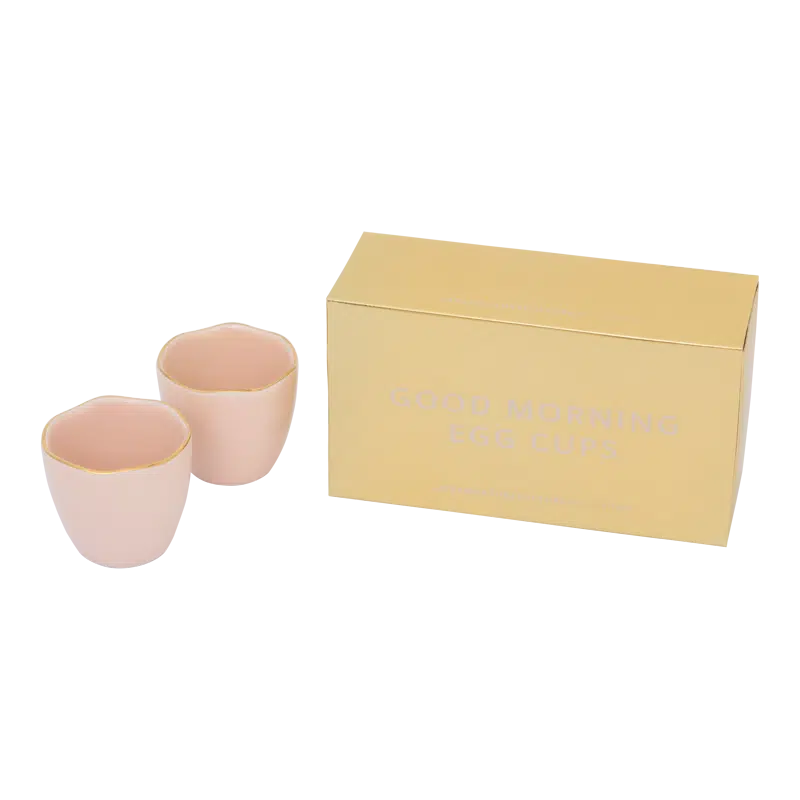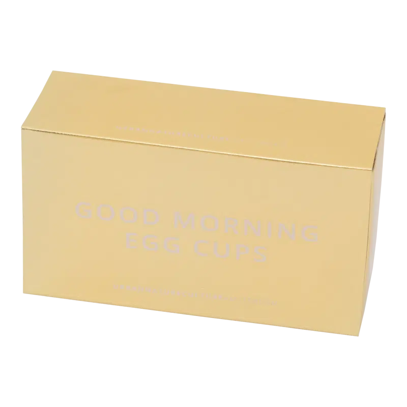 Het is een set van 2 eierdopjes in een goudkleurig omdoosje.