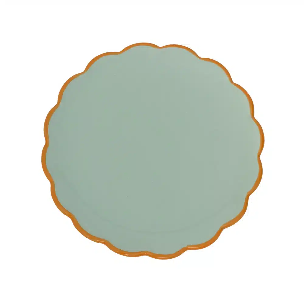 Dit bordje maakt deel uit van onze populaire Good Morning-collectie. Met een frisse celadon- en oranjegekleurde rand is dit geschupte ontbijt/gebaks bordje een viering van contrast. Een vrolijke toevoeging aan je ontbijttafel en een perfecte match met andere artikelen uit de Good Morning-serie.