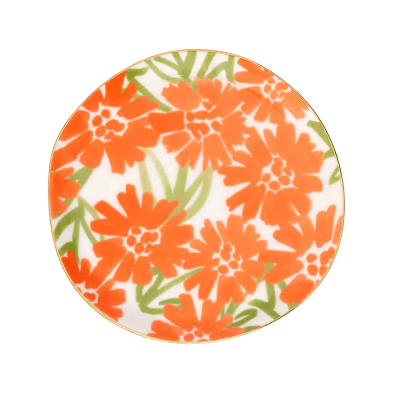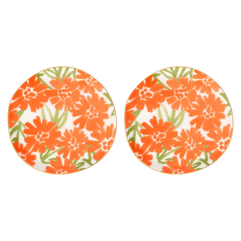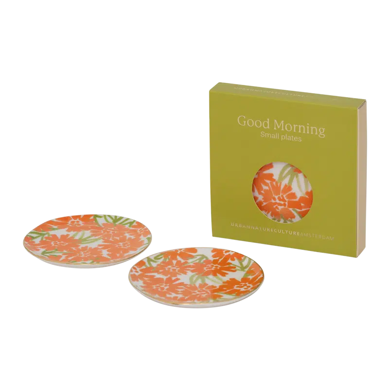 Begin je dag met een warm, vrolijk tintje met deze set van twee kleine bordjes, onderdeel van de Good Morning-collectie van Urban Nature Culture. Deze bordjes hebben een handgeschilderd bloemenmotief in wortelkleur en een delicaat gouden randje. Ze geven een zonnige charme aan het delen van kleine zoetigheden en lekkernijen, waardoor elk moment speciaal wordt. Perfect ook als cadeau, in een mooie giftbox.