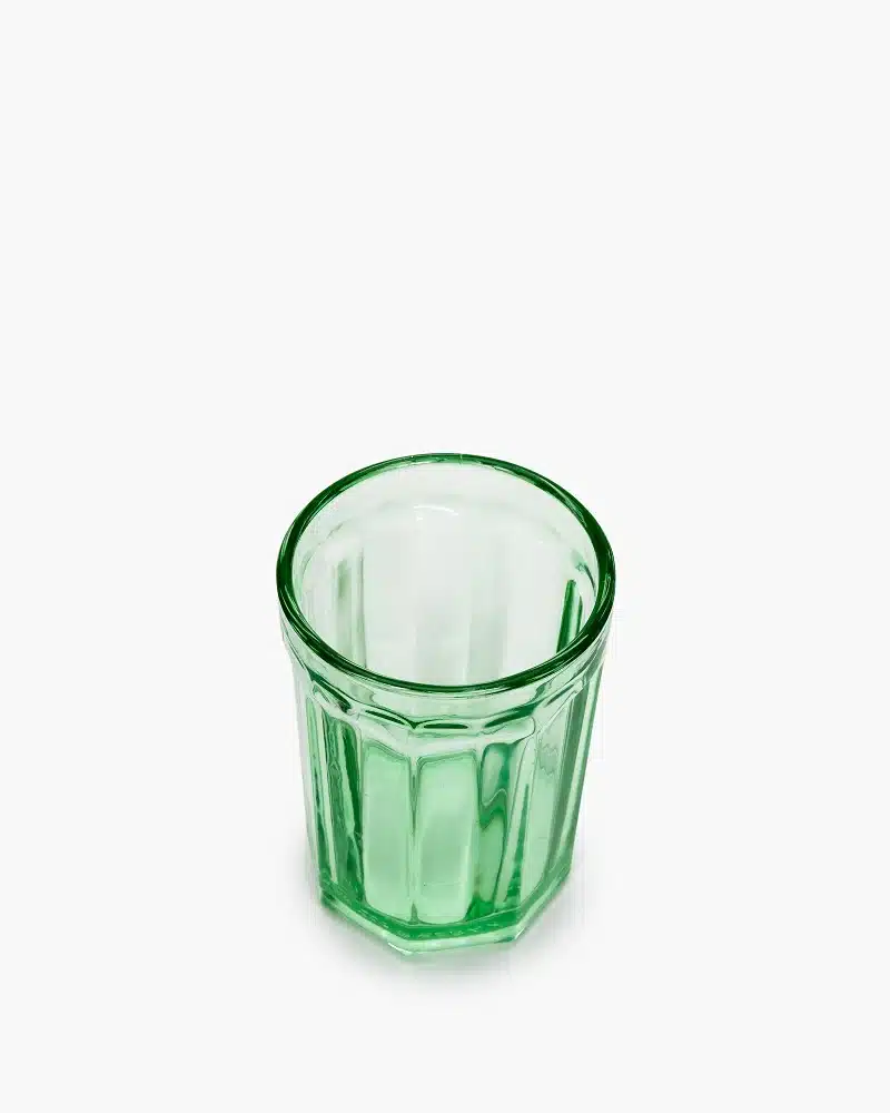 Een groen glas uit de Fish & Fish glas lijn die Paola Navone voor Serax heeft ontworpen.