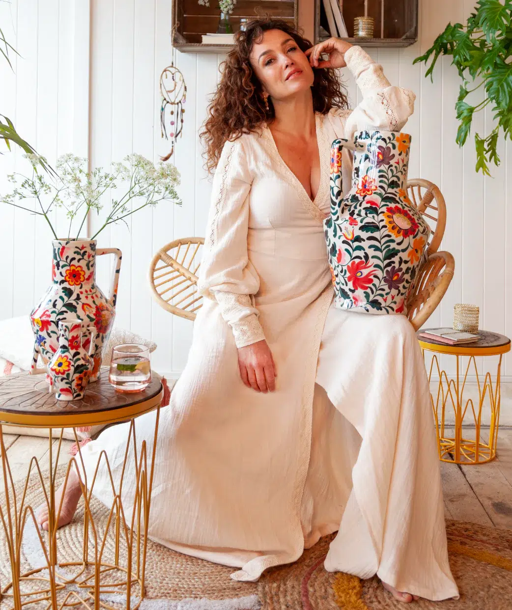 Deze witte vaas met bloemenprint is met de hand gemaakt en beschilderd door een groep van 91 makers in Thailand. De productie van onze keramische vazen is een intensief proces: alleen al het beschilderen van de grote bloemenvaas duurt al 4,5 uur. Een echt kunstwerk in jouw interieur.