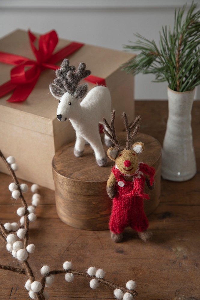 Deze leuke hanger van Rudolf het rendier met een rode broek aan is gemaakt van vilt.