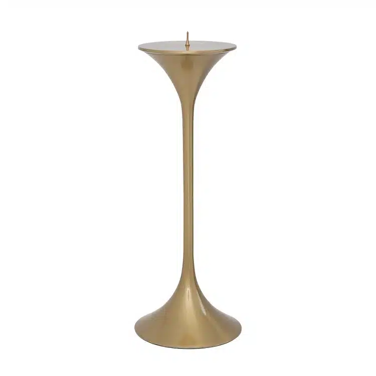 Je vraagt je af… zou het een archeologische vondst kunnen zijn? Deze kandelaar Allure, handgemaakt in India, ziet eruit alsof hij eeuwen geleden tot leven is gekomen. Trompetvormig en verkrijgbaar in twee maten om een paar te creëren, het heeft een elegante, luxe touch. Gemaakt van aluminium met een messing look, de schoonheid wordt nog groter naarmate de tijd verstrijkt.