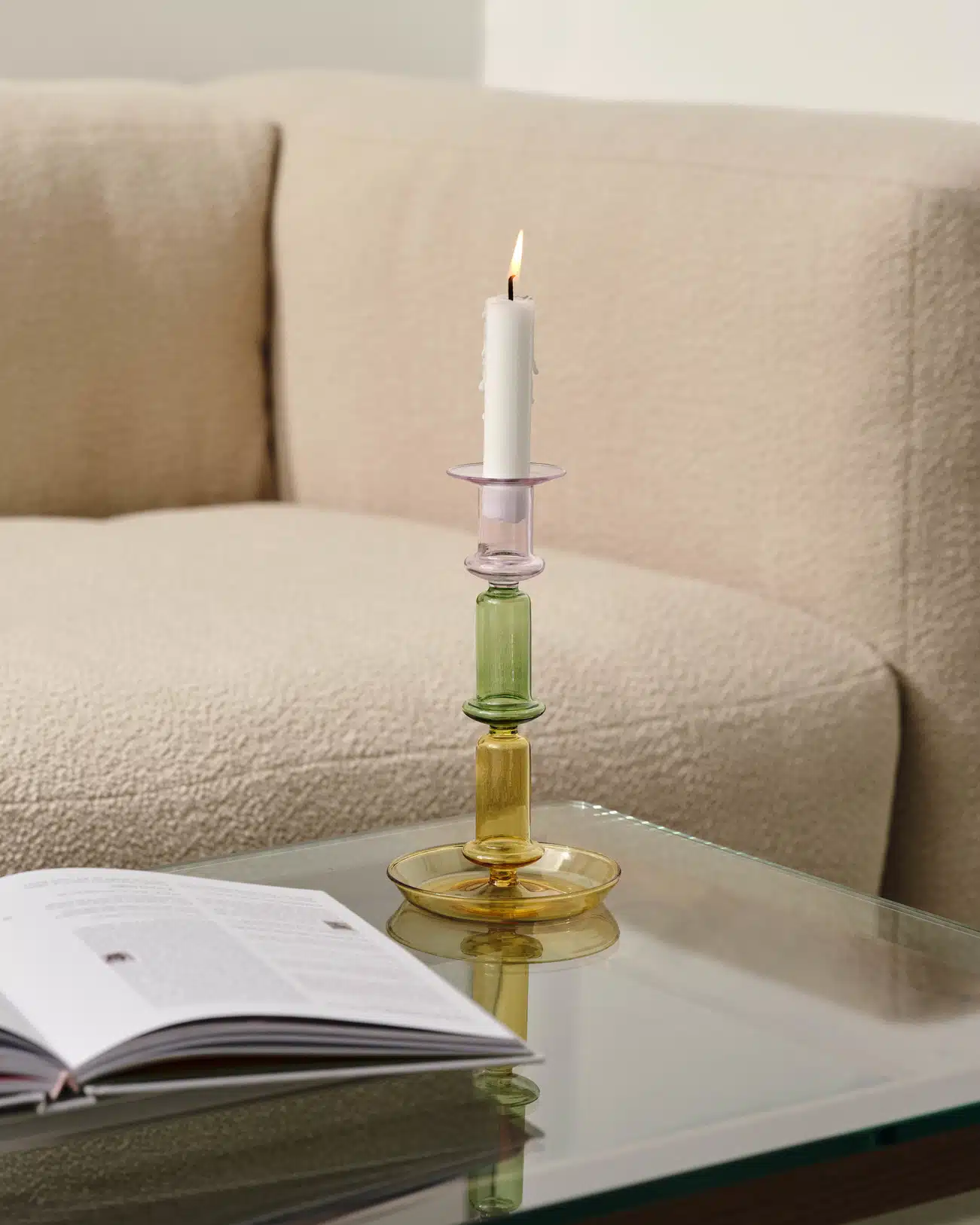 Een mooie elegante semi-transparante Flare kandelaar van borsilicaatglas in 3 kleuren – geel/groen/roze. Met een mooie (HAY) kaars in deze kandelaar creëer je direct sfeer in jouw huis. De kandelaar is zowel decoratief als functioneel en kan op zichzelf worden gebruikt of worden gecombineerd met andere (HAY) kandelaars. Heb jij al een mooi plaatsje in gedachte?