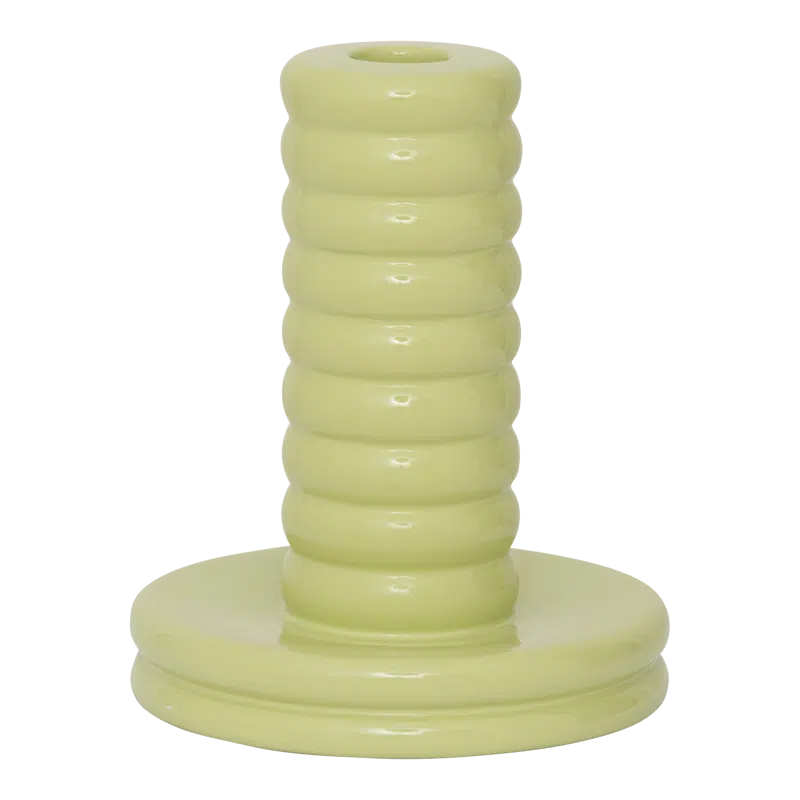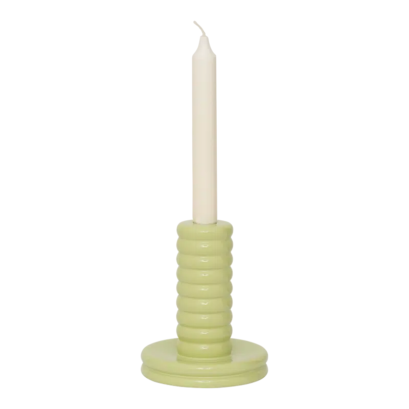 Breng karakter en vrolijkheid in huis met deze speelse kandelaar in lichtgroen. Elegant van kleur maar gedurfd van vorm, maakt het zware geribbelde ontwerp een echte statement op elke tafel of plank. Met zorg gemaakt voor zowel stijl als het milieu, voegt dit expressieve woonaccessoire persoonlijkheid toe aan je interieur.