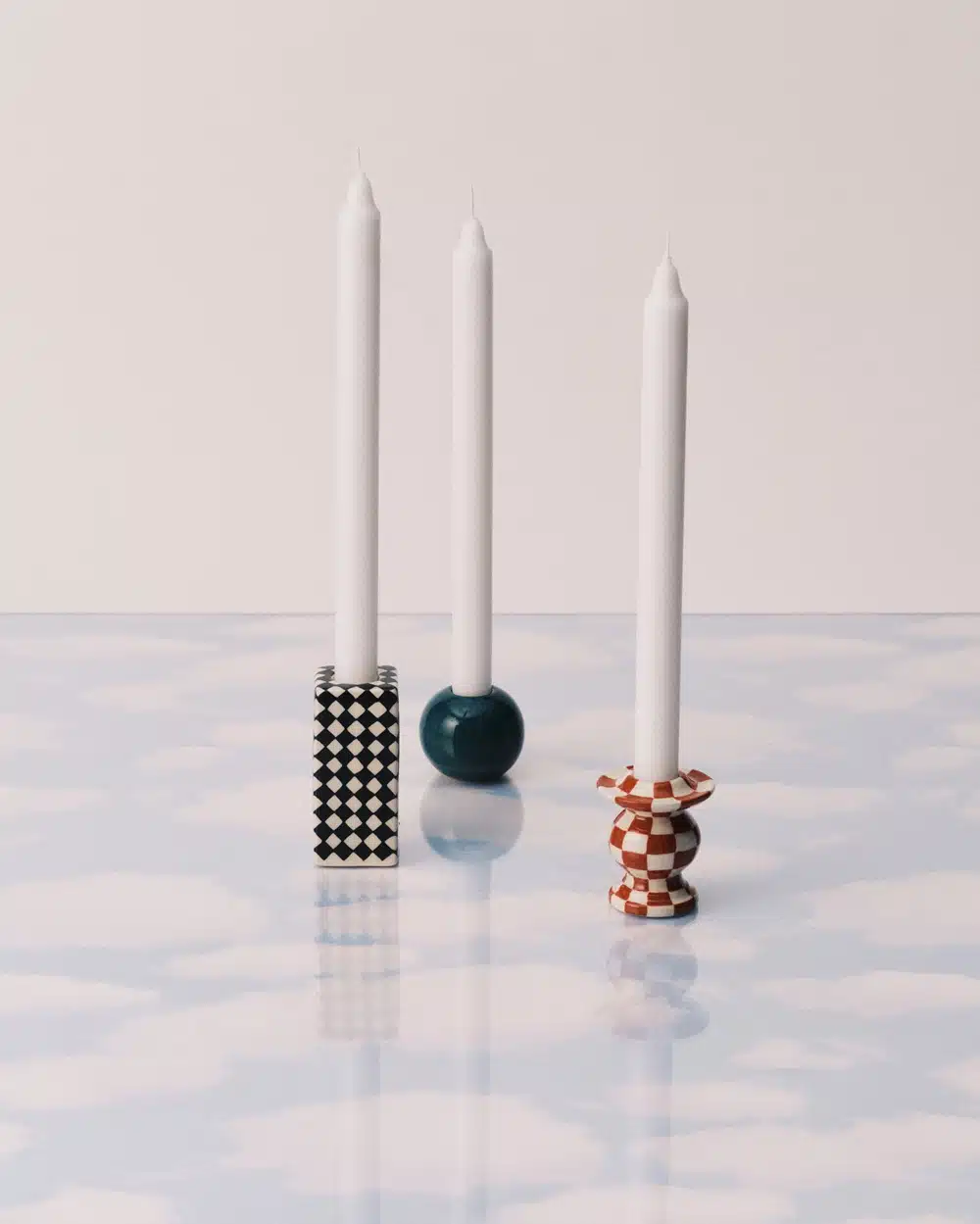 De rood-witte kandelaar uit de Les Objets Mouleversants collectie is geïnspireerd op iconische Wouters & Hendrix-elementen, zoals het surrealistische kleurpatroon. Het handbeschilderde aardewerk voegt speelsheid en balans toe aan elke ruimte.