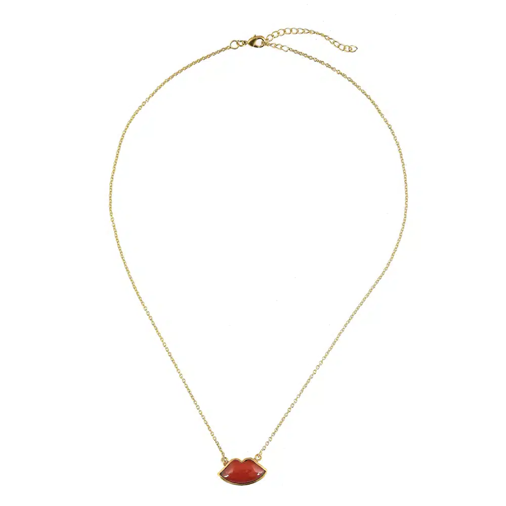 Een vergulde ketting met een mooie bedel van rode lippen. Een perfecte keuze voor een klassieke, tijdloze stijl die moeiteloos te combineren is met andere kettingen.