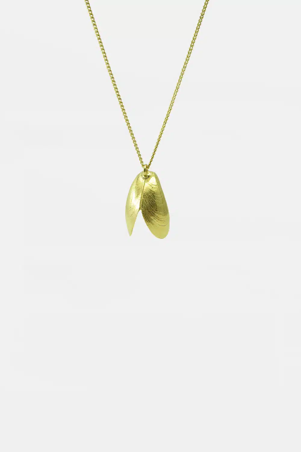 Fijne ketting met een kleine open mossel gegoten uit een echte schelp.