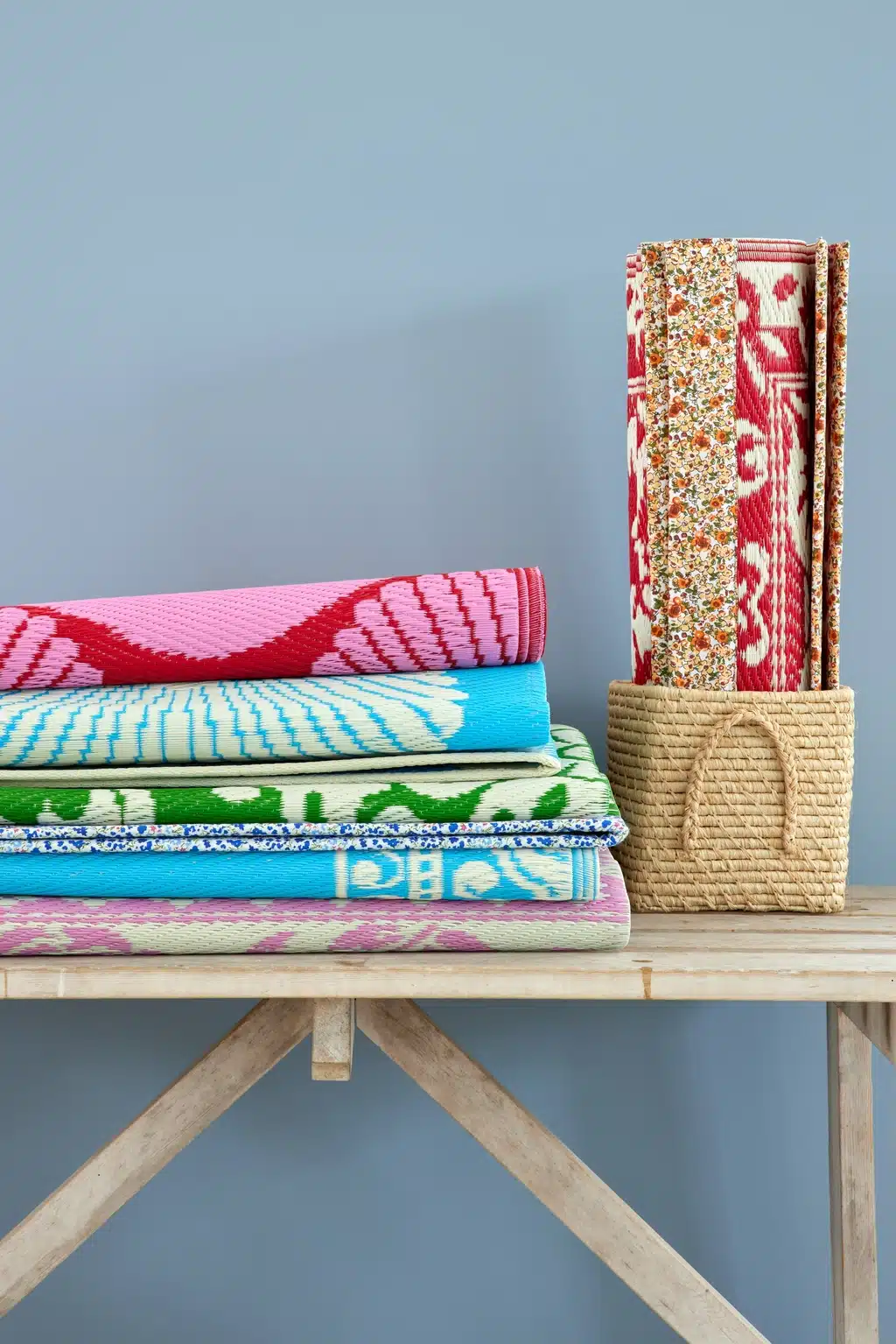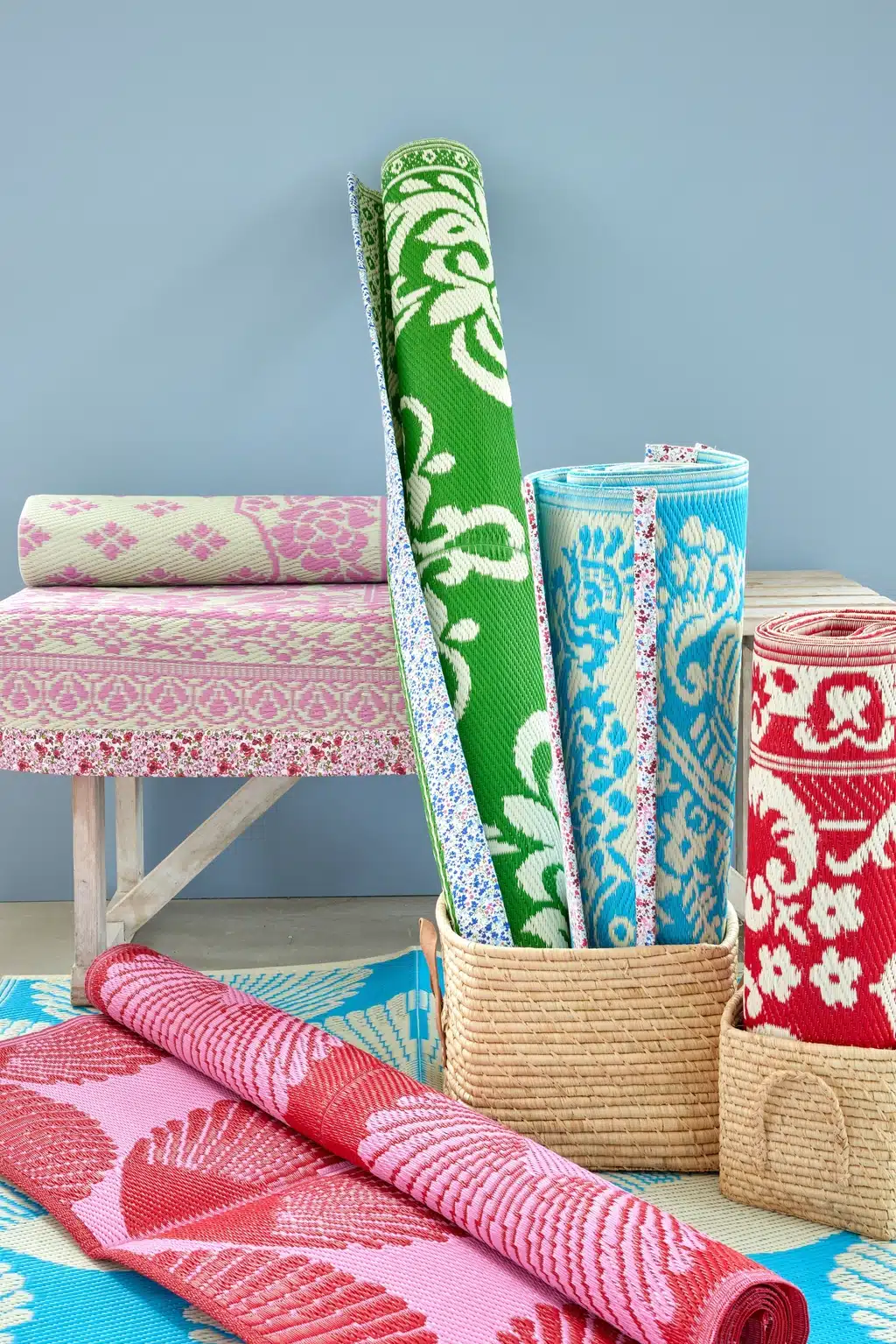 Het vloerkleed is gemaakt van gerecycled plastic en heeft een afmeting van 120×180 cm, waardoor het een prachtige toevoeging is aan iedere ruimte! Dus ga je gang en voeg een vleugje alledaagse magie toe aan je huis of tuin.