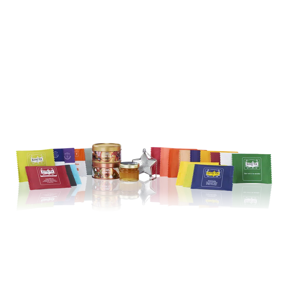 Met de Kusmi Tea Adventskalender met theeën en kruidentheeën van Kusmi Tea begint u aan 24 buitengewone haltes op uw reis naar de feestdagen!