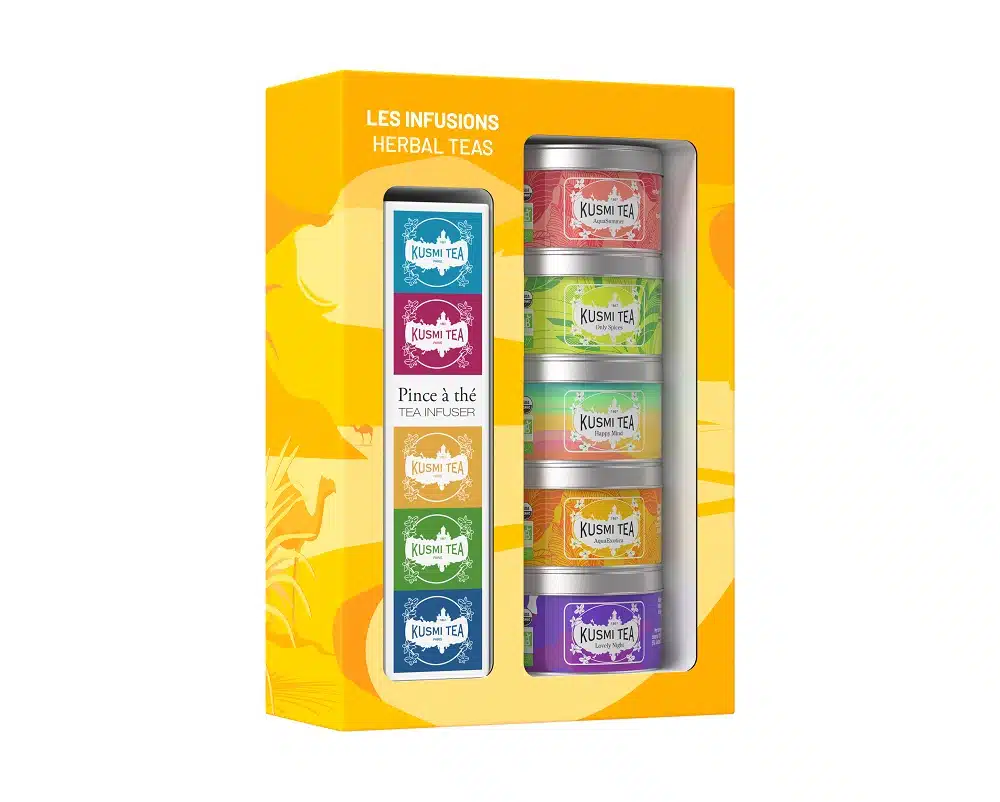 Met zijn 5 mini-blikjes met biologische kruidenthee en zijn thee-ei lepel zal de Herbal Teas-cadeauset liefhebbers van infusies en kruidenthee in vervoering brengen.