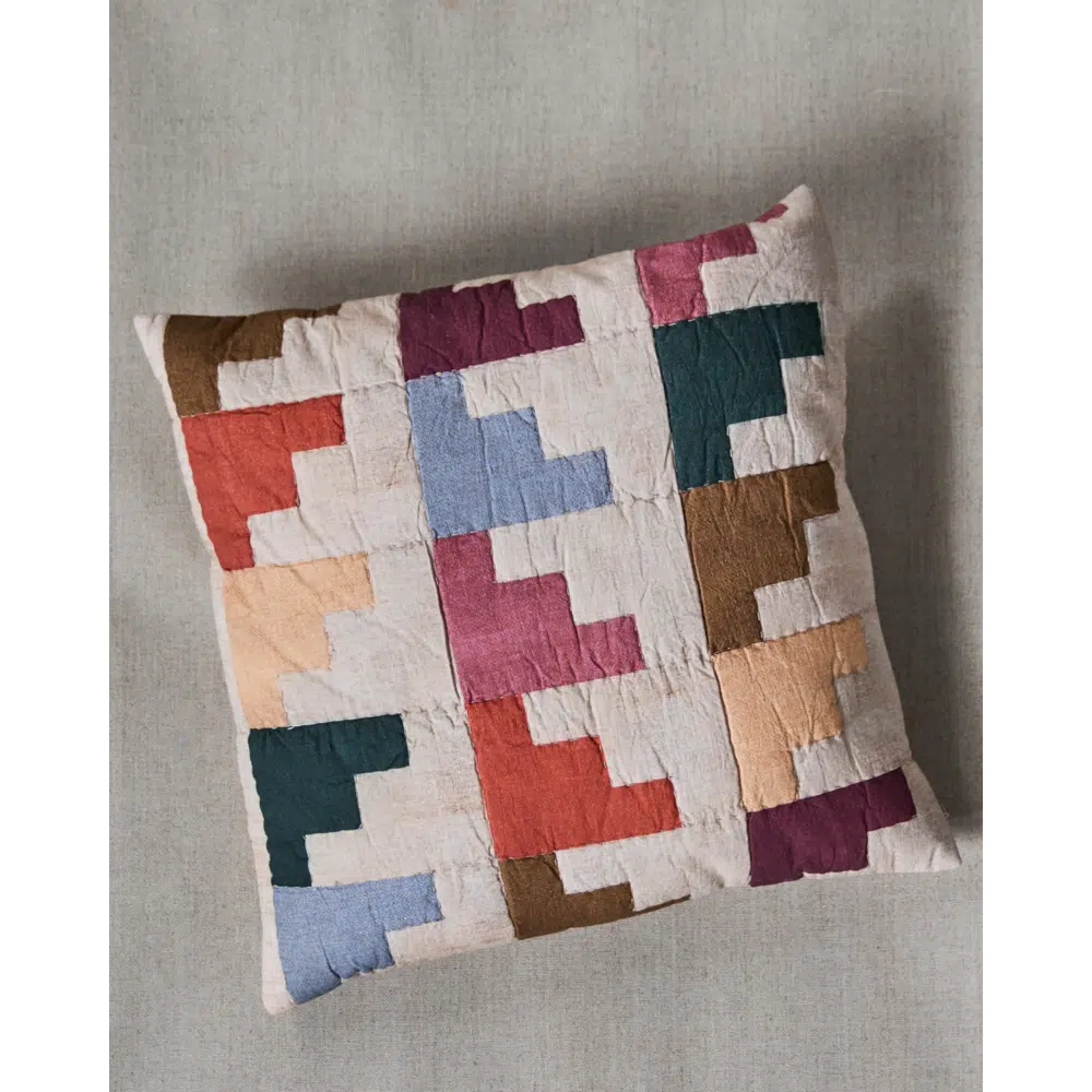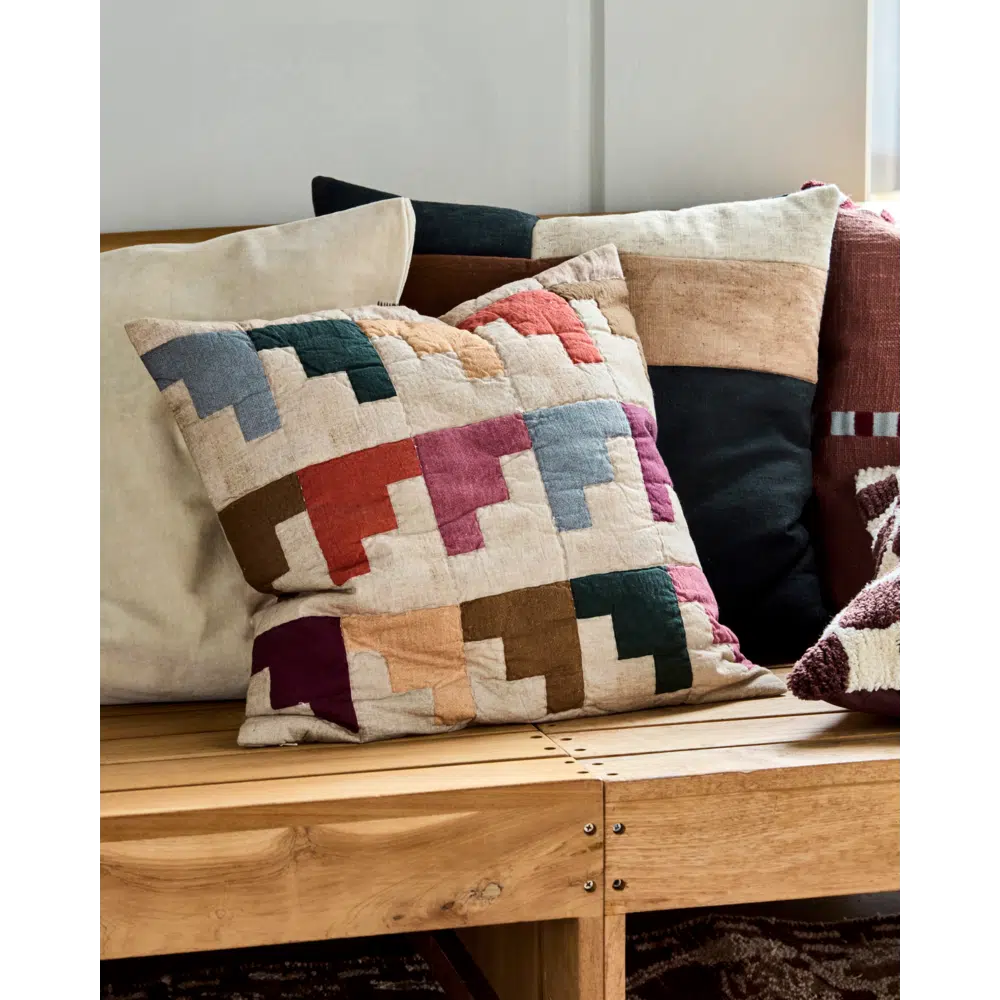 Deze kussenhoes fleurt je interieur op met een opvallend, met de hand gedrukt grafisch patroon en decoratieve stiksels. Het veelkleurige ontwerp is gemaakt van zacht, hoogwaardig katoen en geeft je woonkamer of slaapkamer een modern, speels accent. Gebruik hem op zichzelf voor een artistiek statement of combineer hem met effen kussenhoezen om diepte en karakter aan je interieur toe te voegen.