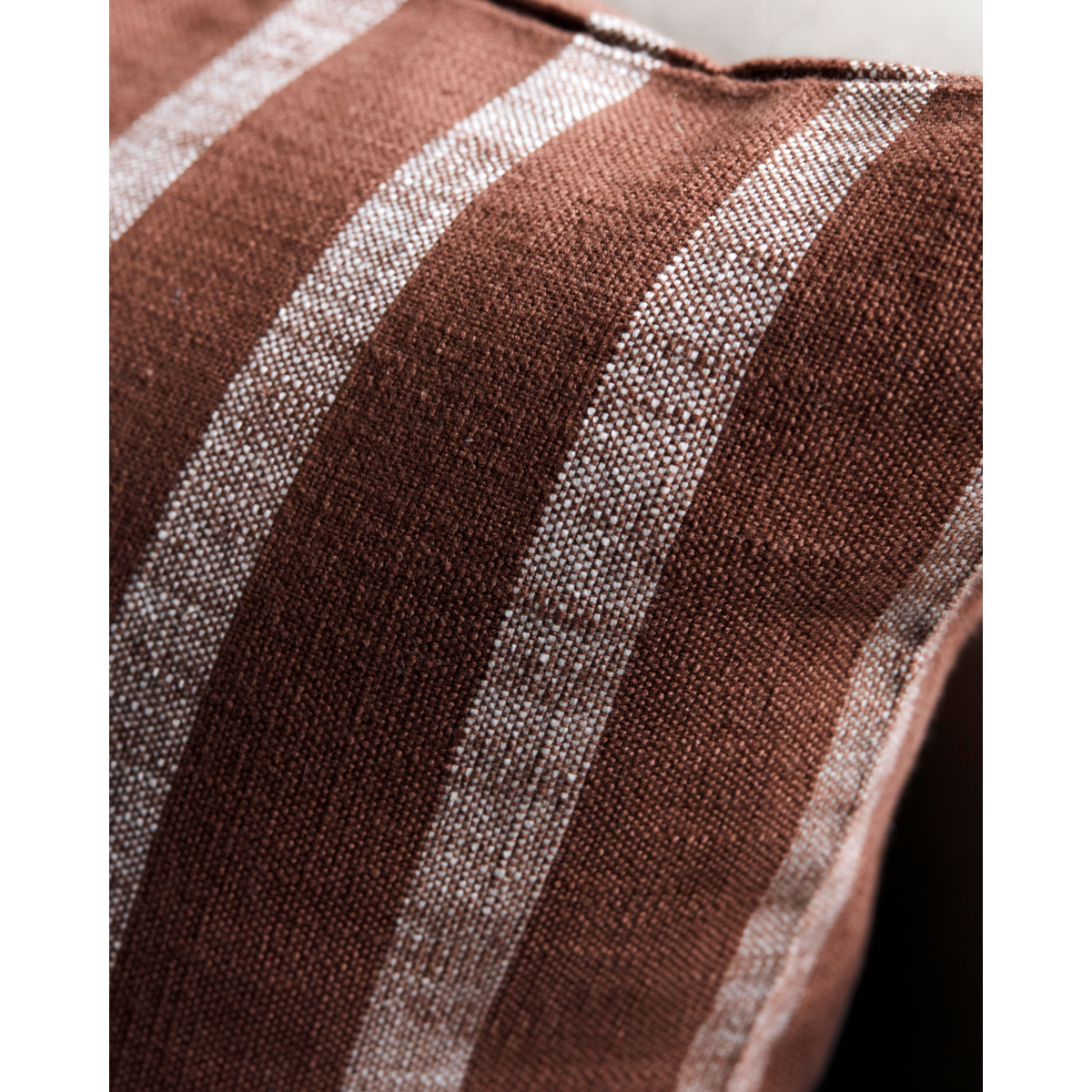 Voeg wat extra flair toe aan je bank of bed met een nieuwe kussenhoes van House Doctor. Thame is gemaakt van OEKO-TEX® 100 gecertificeerd katoen in een dik weefsel voor textuur en extra zachtheid. Met zijn gestreepte dessin in een fijne roestbruine kleur wordt je interieur vernieuwd met een subtiel patroon. Gebruik het met verschillende tinten bruin, zoals kastanjebruin, camel of zand, voor een rustige en geaarde look. Voor een unieke touch meng je het katoen met linnen of zelfs fluweel om een zachte plek te creëren met verschillende texturen. De Thame kussenhoes is veelzijdig genoeg om in elke interieurstijl te passen en gedetailleerd genoeg om op te vallen.