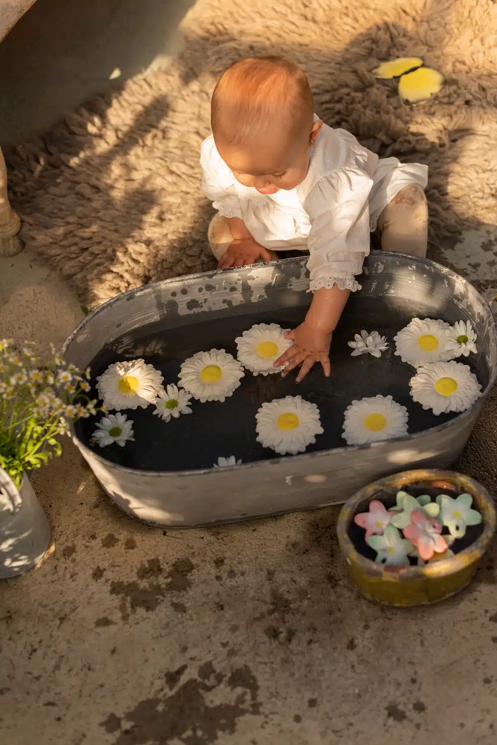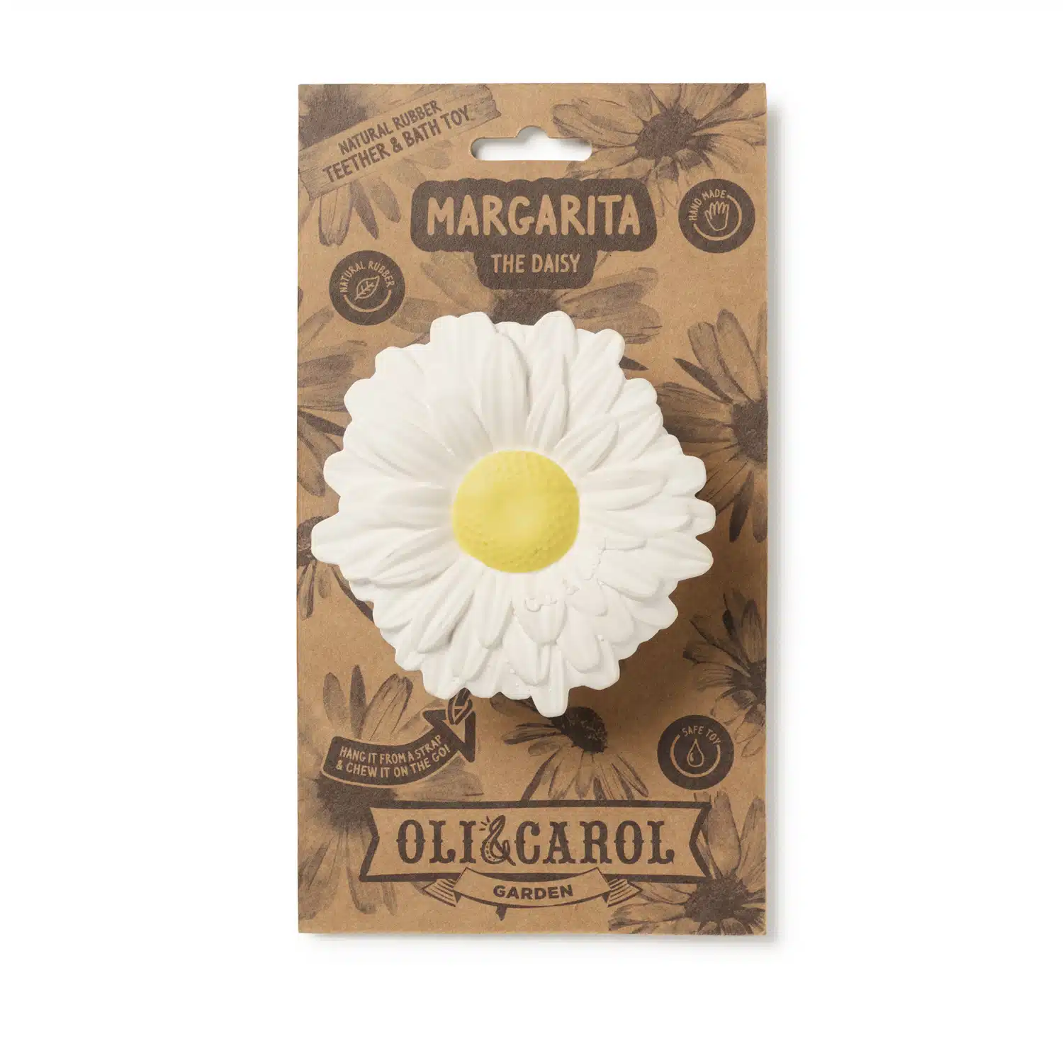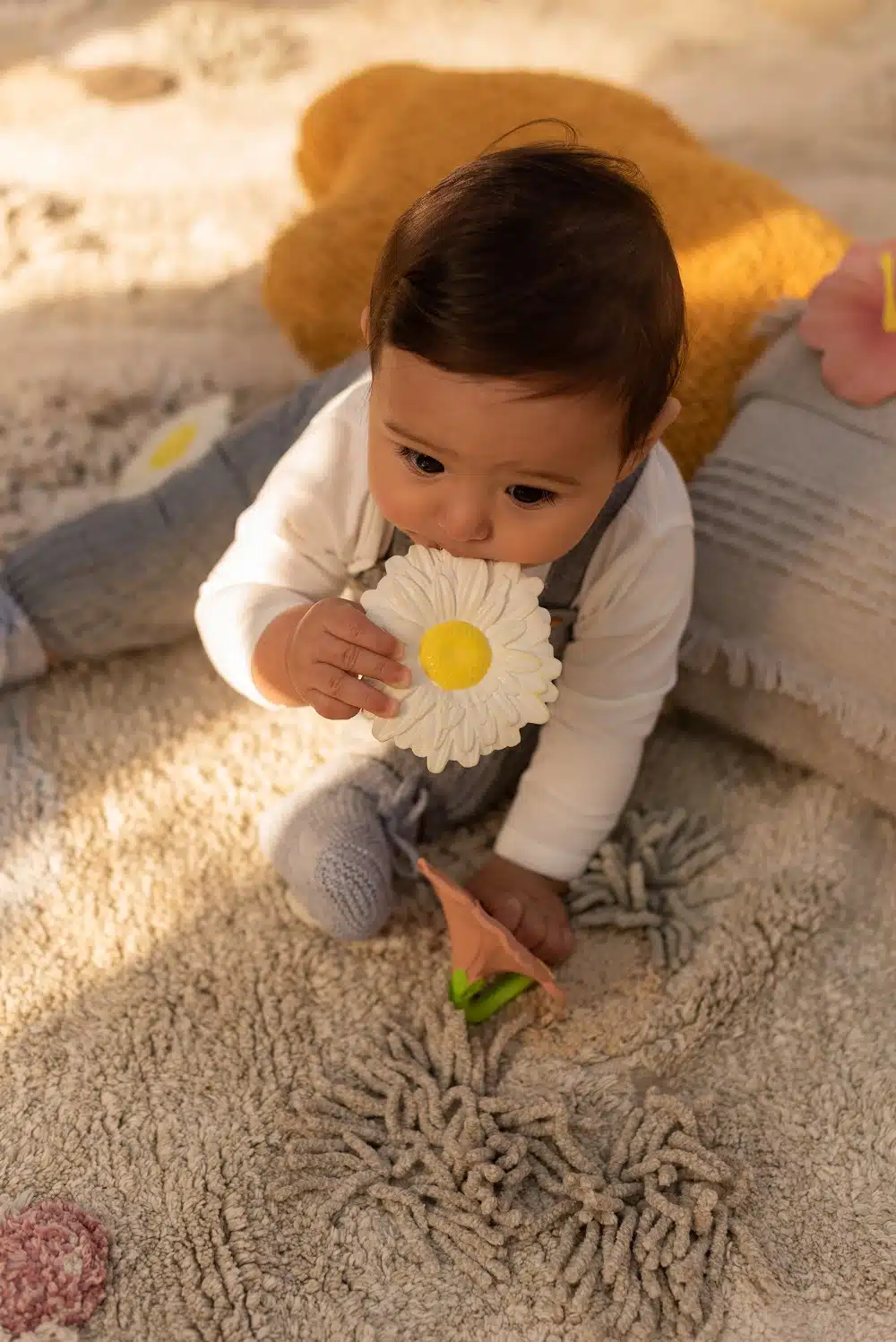 Margarita de Madelief is een bijtring, badspeeltje en zintuiglijk speelgoed voor baby’s. Het realistische ontwerp en de felle kleuren stimuleren de zintuigen van baby’s terwijl ze op een veilige natuurlijke bijtring kauwen. Gedetailleerde texturen zorgen ervoor dat kinderen de wereld om hen heen ontdekken terwijl ze tandjes krijgen.