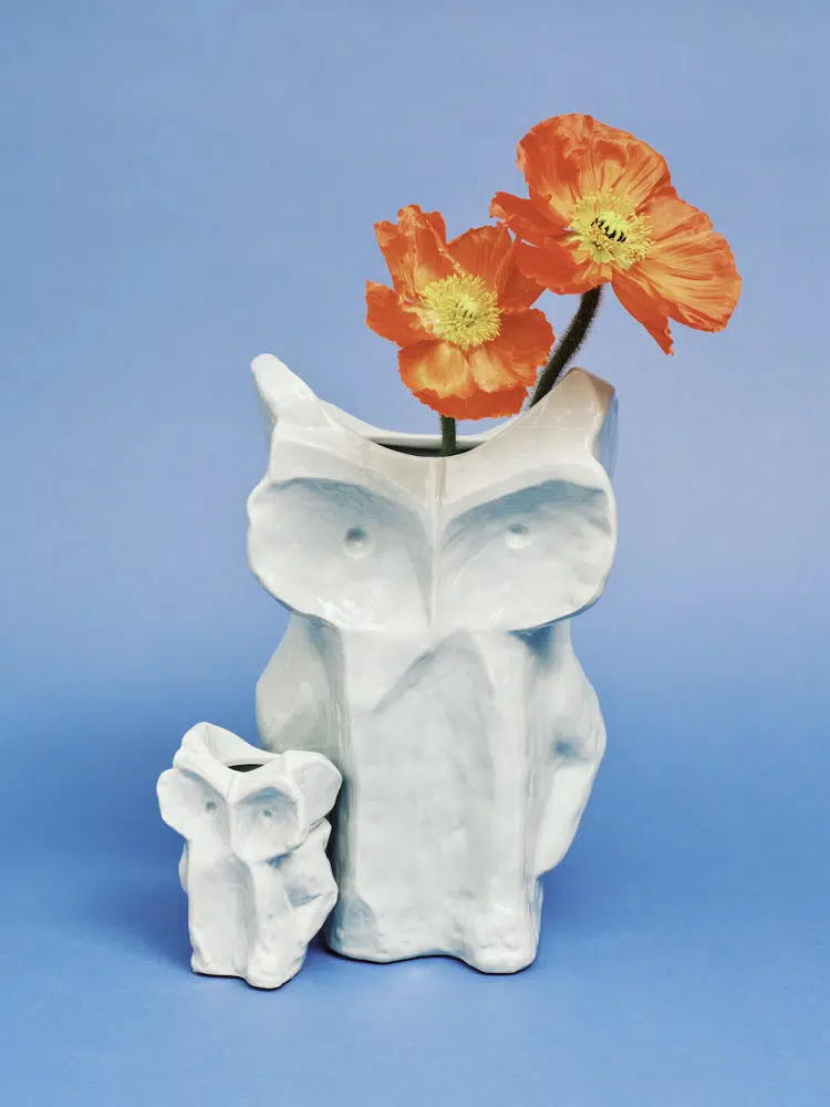 After Midnight is een sculpturaal vaasje in de vorm van een uil, ontworpen door het excentrieke Italiaanse modemerk Marni voor Serax. De vaas valt op door haar speelse, fantasierijke en kleurrijke stijl, die prachtig contrasteert met de andere collecties van Serax. Dit ontwerp is een echte blikvanger en gespreksstarter. Met After Midnight doorbreekt Marni de ernst van elke tafel — vooral rond middernacht.