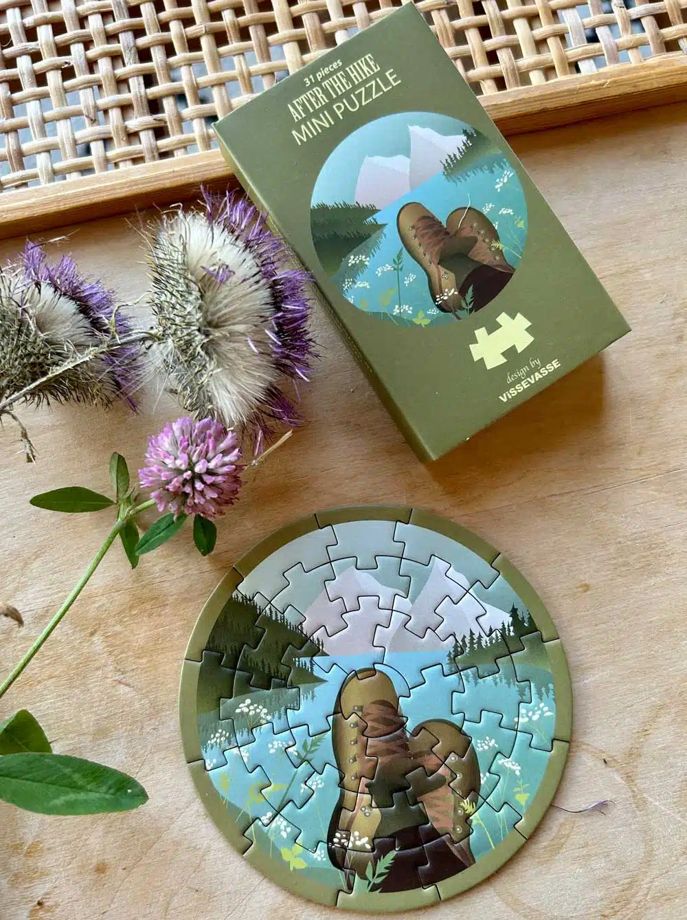 • De minipuzzel heeft 31 stukjes en een doorsnee van 11 cm. De doos meet 11×6,5×2 cm.