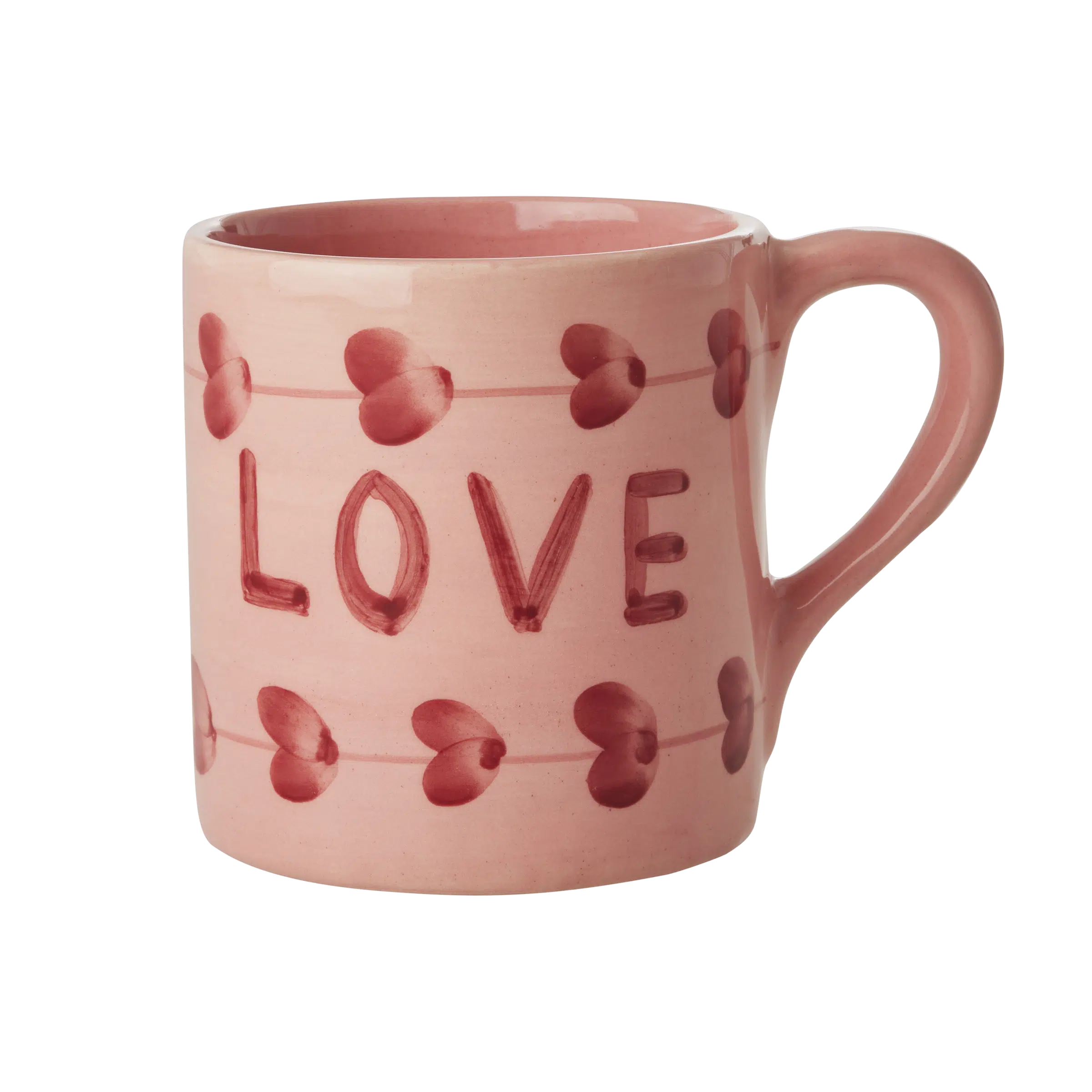 Leuke keramieken koffiemok met handgeschilderde hartjes en het woord “love” (liefde) in het midden geschreven. De mok is handgeschilderd door een groep geweldige Portugese vrouwen, waardoor elke mok uniek is. Wij vinden deze mok zo bijzonder!