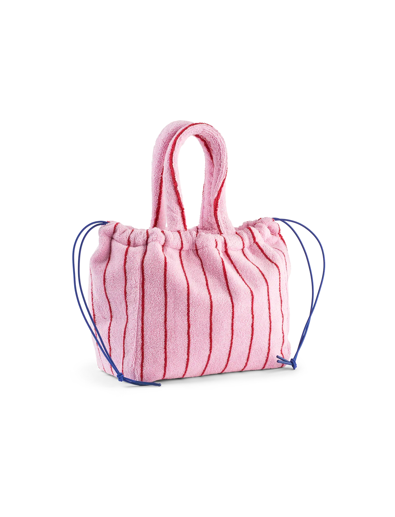 De Naram Handbag heeft een kort handvat en een open, gerimpelde bovenzijde met gekleurde elastische trekkoorden, zodat de tas moeiteloos kan worden gesloten door simpelweg aan de koorden te trekken – dit zorgt voor een charmant gerimpeld sluitingseffect. De elastische koorden zijn in een betoverende tint blauw.
